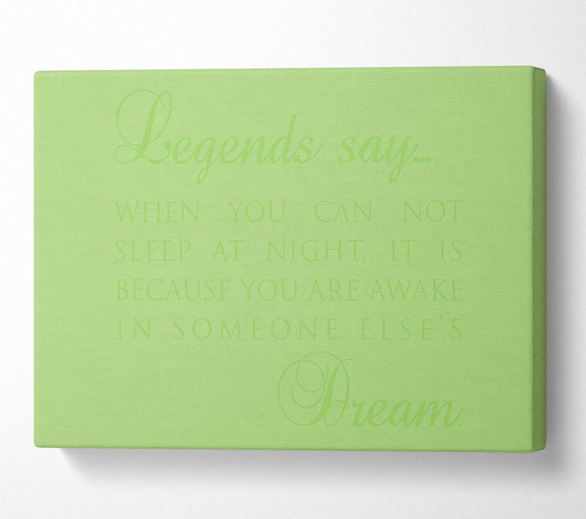 Legends Say Dream Lime Green Canvas Print handmade in the UK. Stretched over a 2 inch thick wooden box frame, ready to hang on your wall.