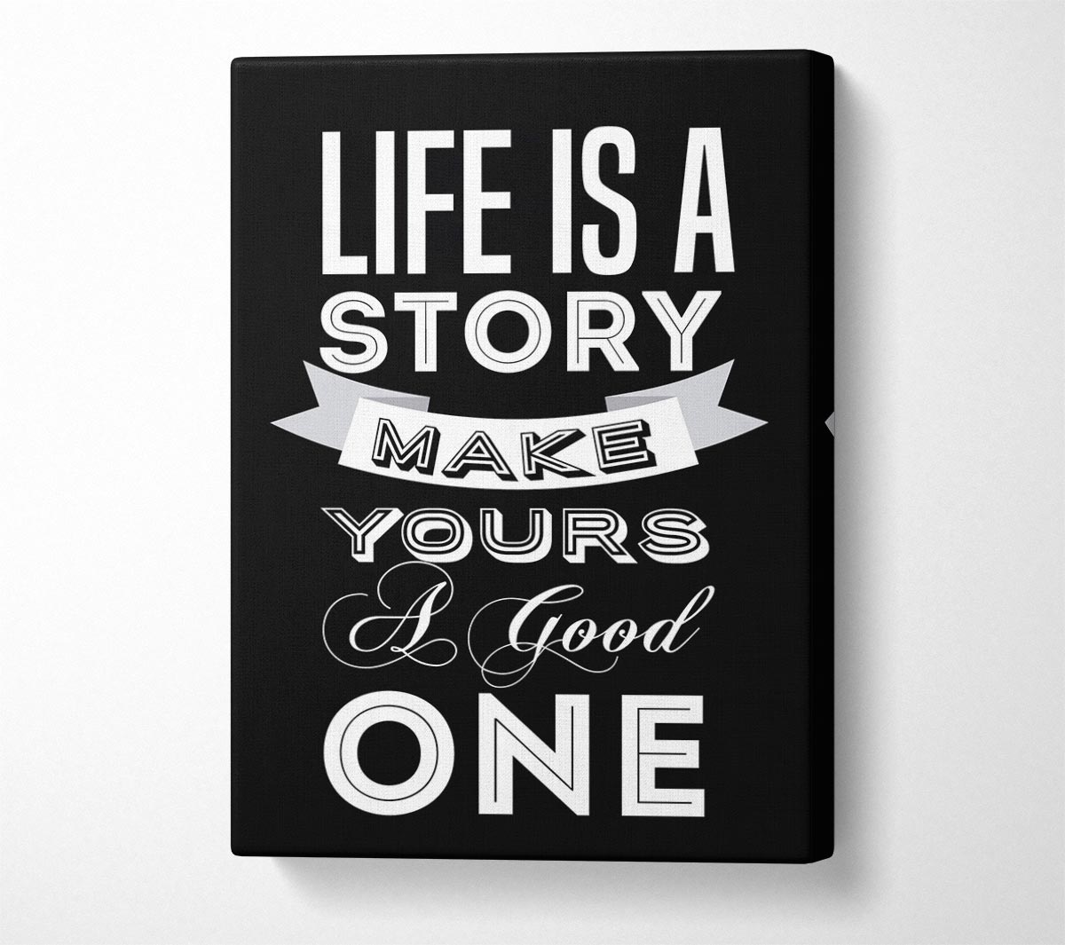Life Is A Story Canvas Print handmade in the UK. Stretched over a 2 inch thick wooden box frame, ready to hang on your wall.