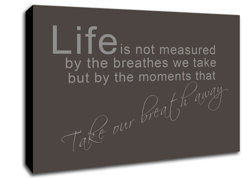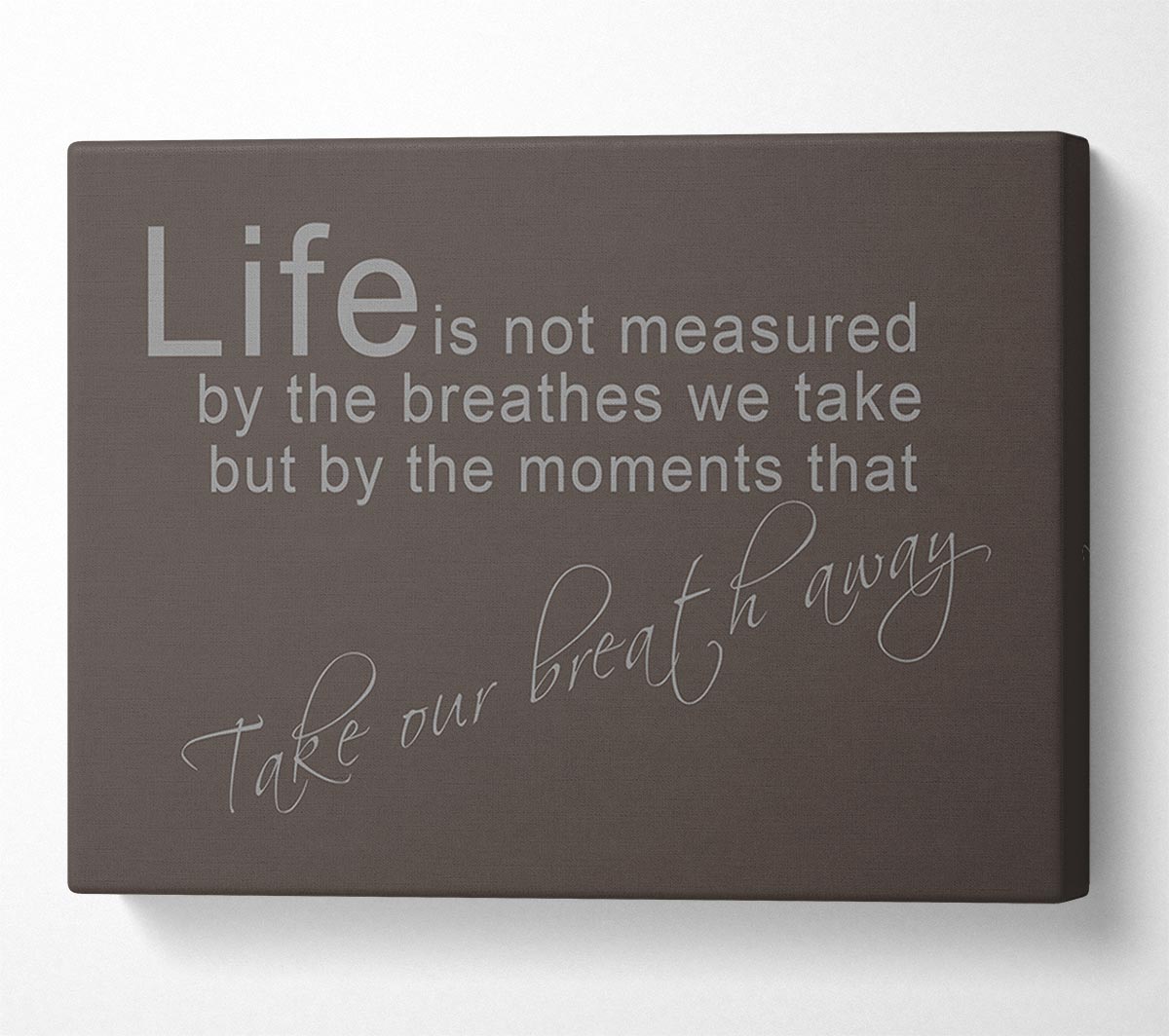 Life Is Not Measured Chocolate Canvas Print handmade in the UK. Stretched over a 2 inch thick wooden box frame, ready to hang on your wall.