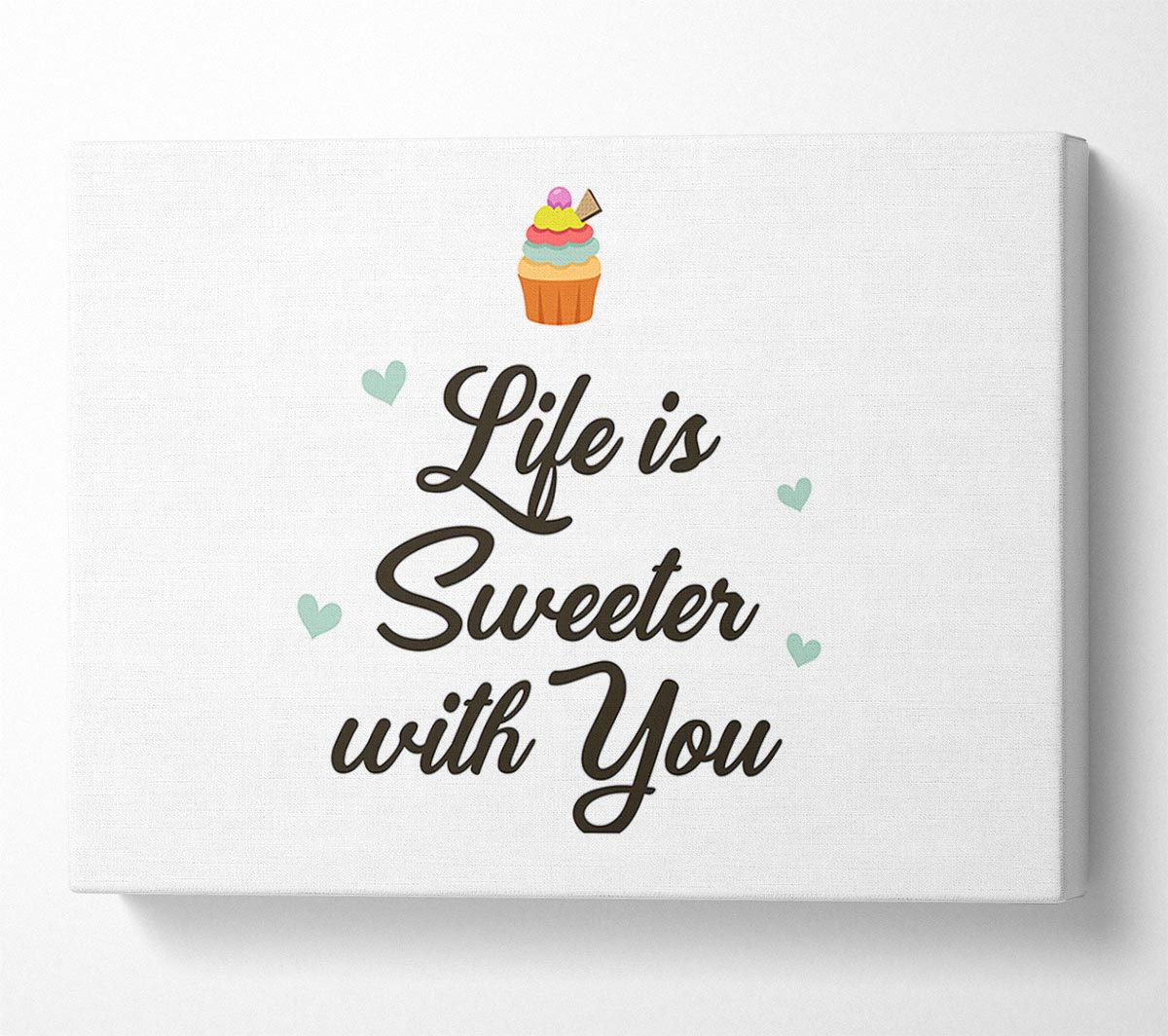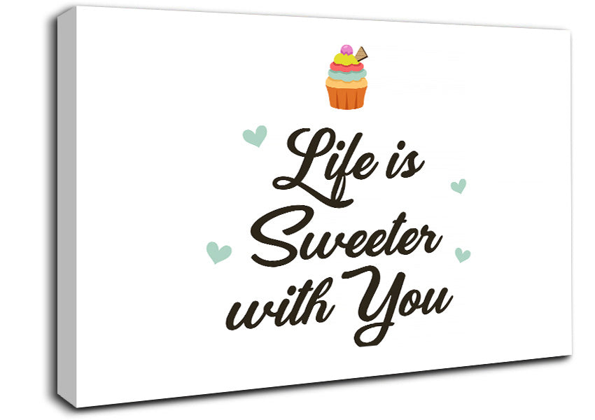 Life Is Sweeter With You Canvas Print handmade in the UK. Stretched over a 2 inch thick wooden box frame, ready to hang on your wall.