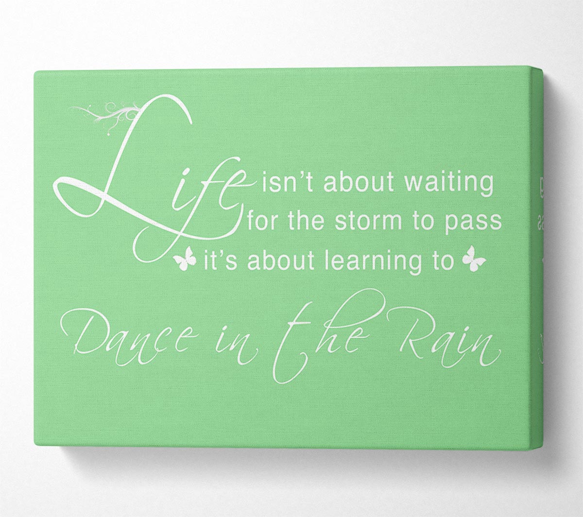 Life Isnt About Waiting Green Canvas Print handmade in the UK. Stretched over a 2 inch thick wooden box frame, ready to hang on your wall.