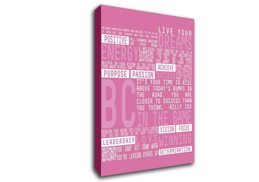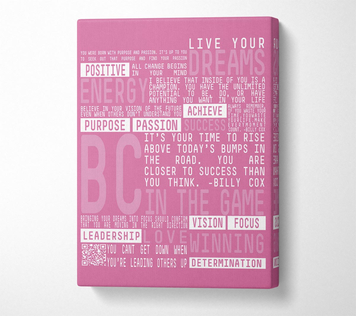 Live Your Dreams Pink Canvas Print handmade in the UK. Stretched over a 2 inch thick wooden box frame, ready to hang on your wall.
