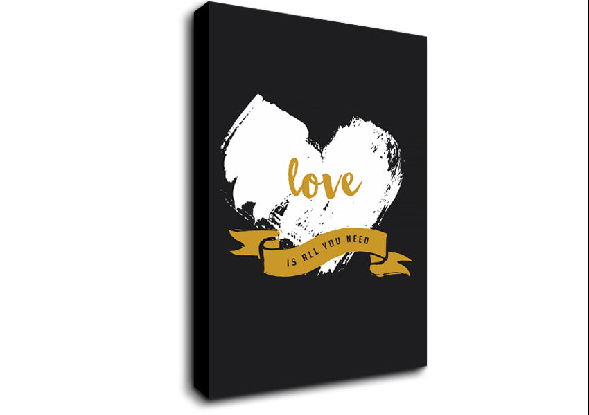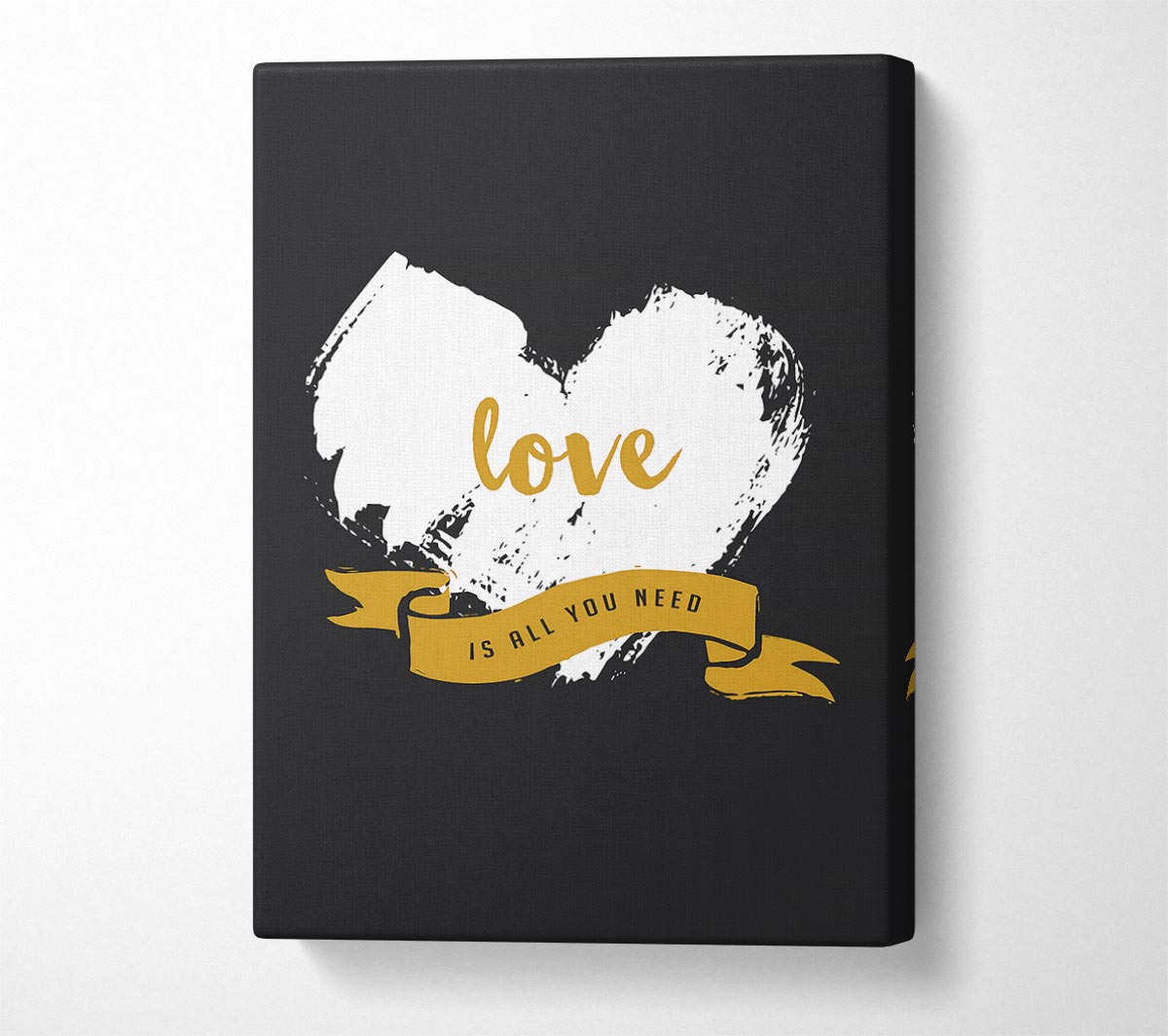 Love Is All You Need Canvas Print handmade in the UK. Stretched over a 2 inch thick wooden box frame, ready to hang on your wall.