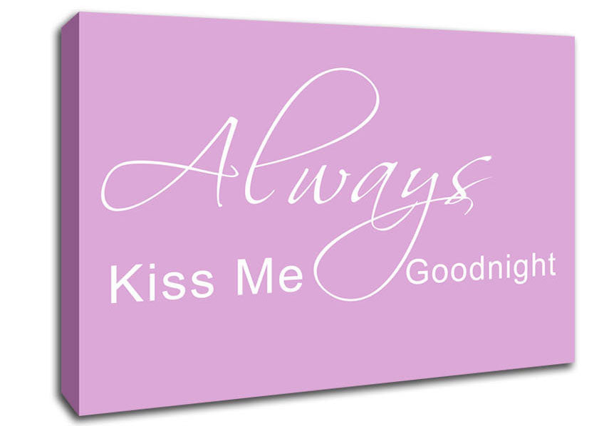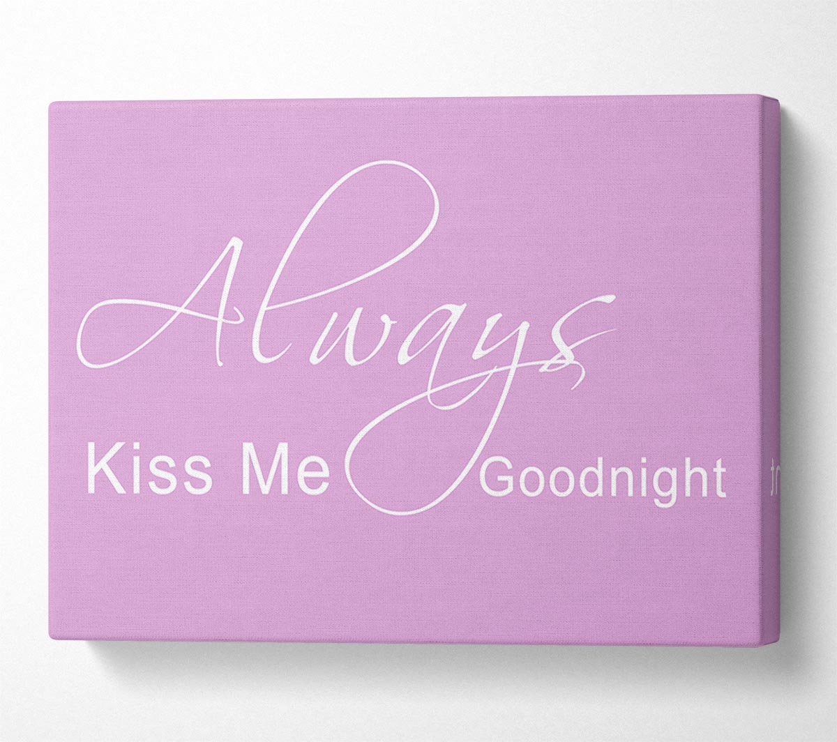 Love Quote Always Kiss Me Goodnight 2 Pink Canvas Print handmade in the UK. Stretched over a 2 inch thick wooden box frame, ready to hang on your wall.