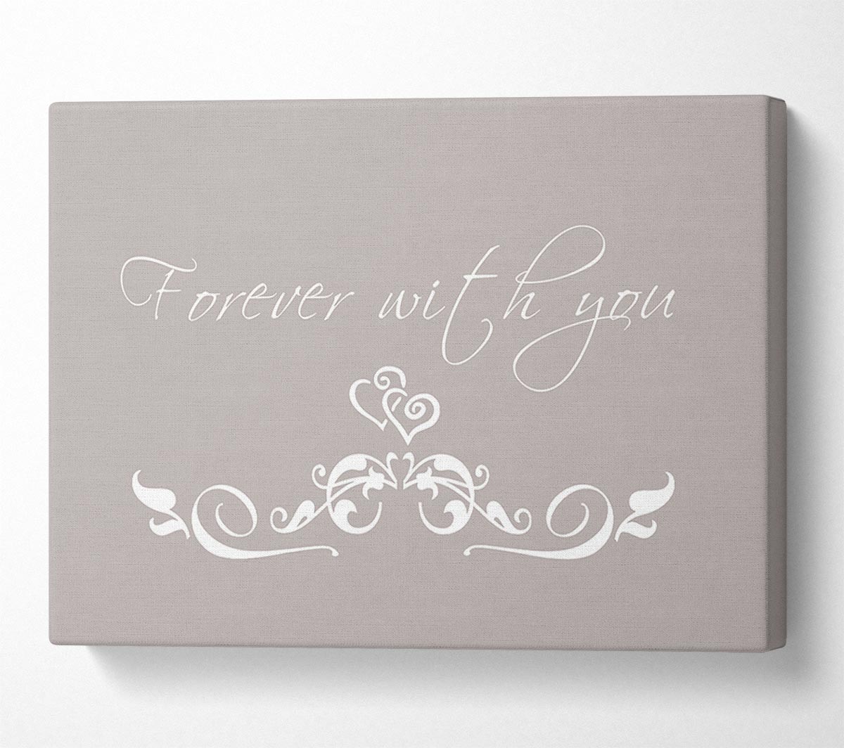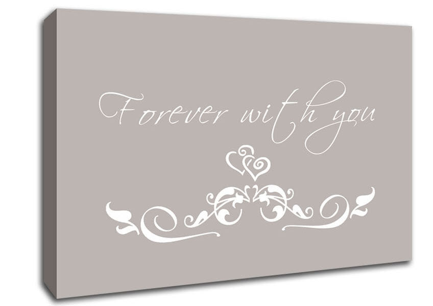 Love Quote Forever With You Beige Canvas Print handmade in the UK. Stretched over a 2 inch thick wooden box frame, ready to hang on your wall.