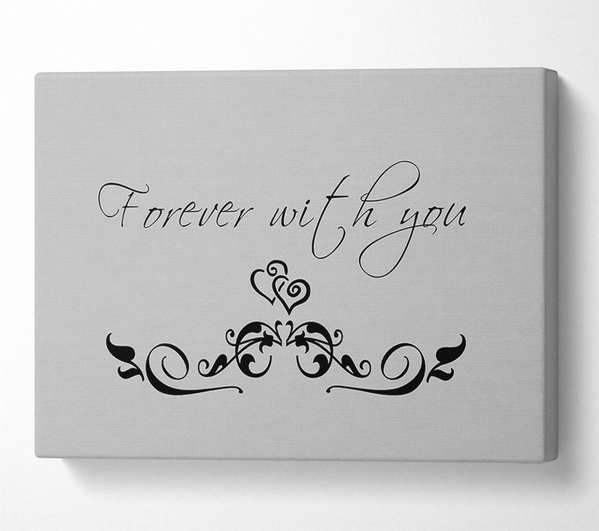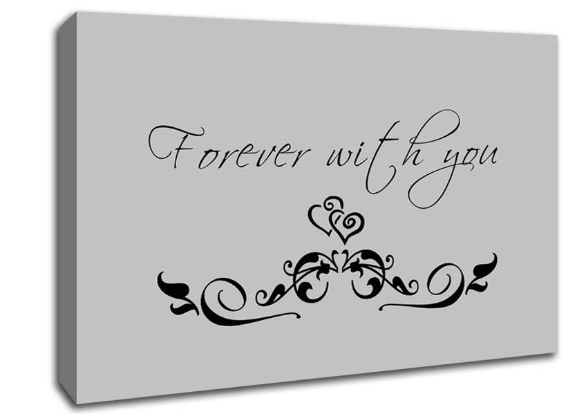 Love Quote Forever With You Grey Canvas Print handmade in the UK. Stretched over a 2 inch thick wooden box frame, ready to hang on your wall.