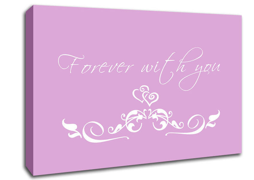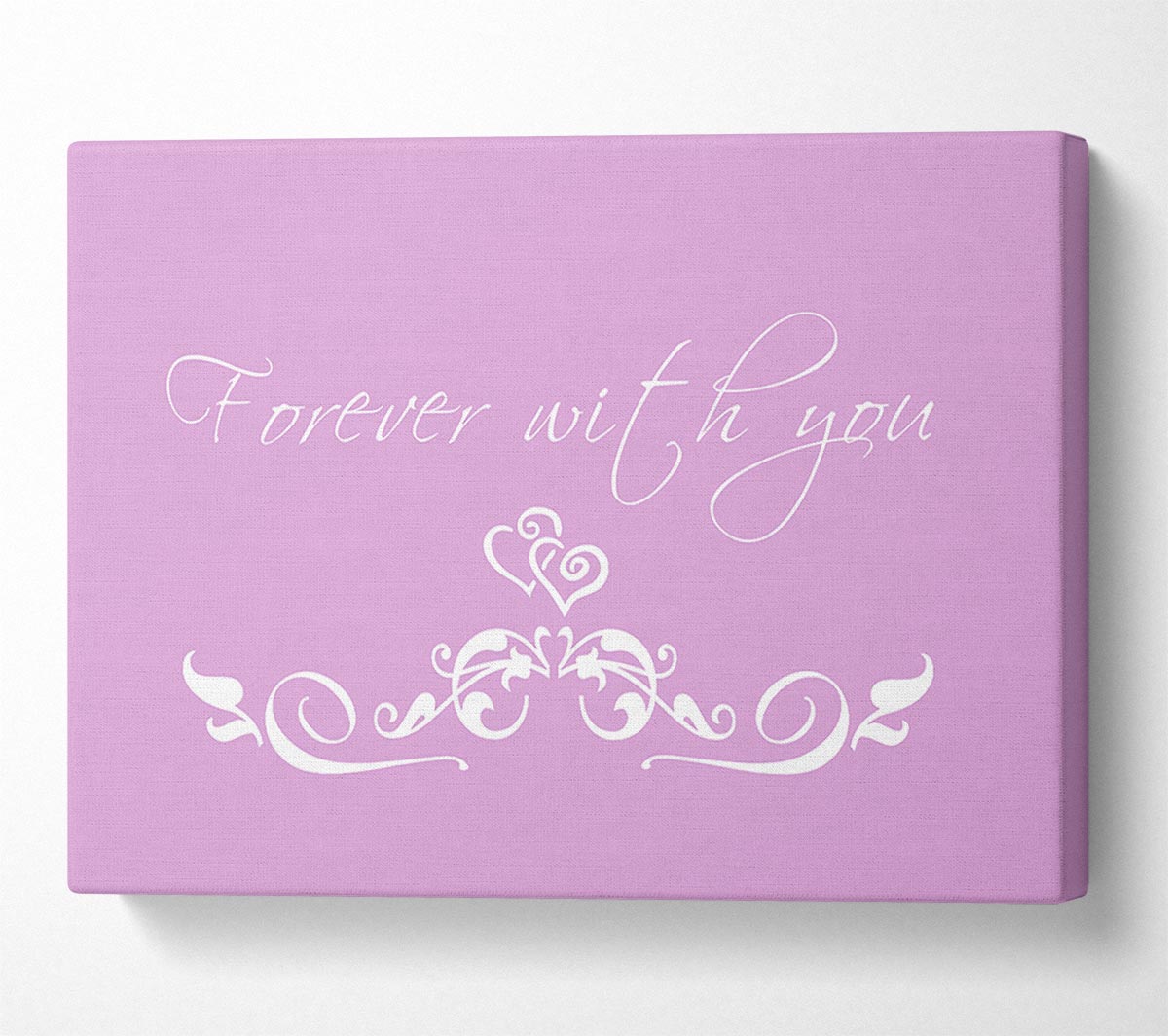Love Quote Forever With You Pink Canvas Print handmade in the UK. Stretched over a 2 inch thick wooden box frame, ready to hang on your wall.