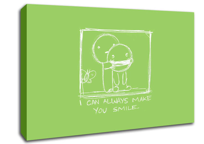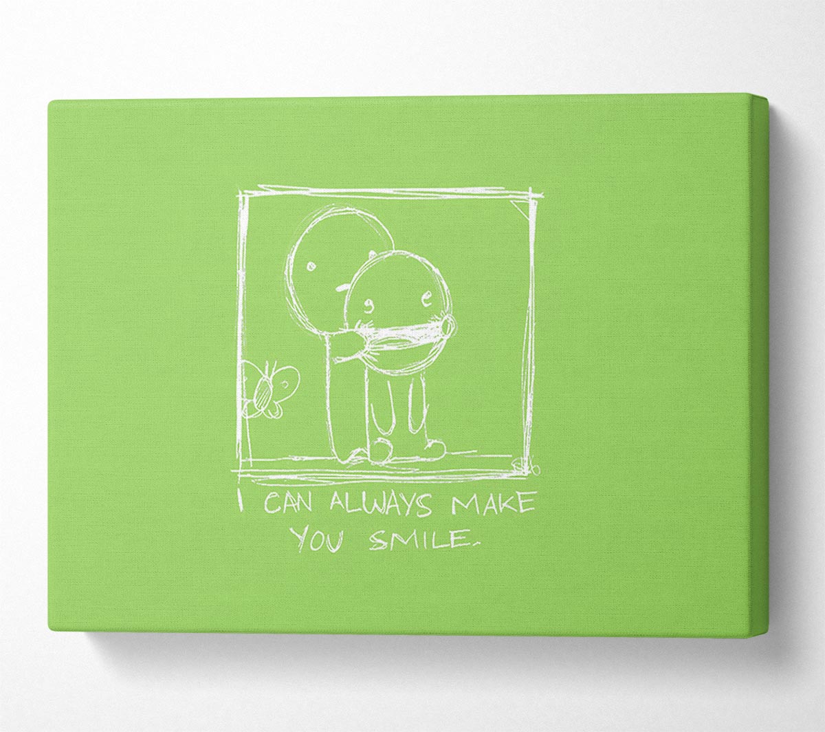 Love Quote I Can Always Make You Smile Lime Green Canvas Print handmade in the UK. Stretched over a 2 inch thick wooden box frame, ready to hang on your wall.