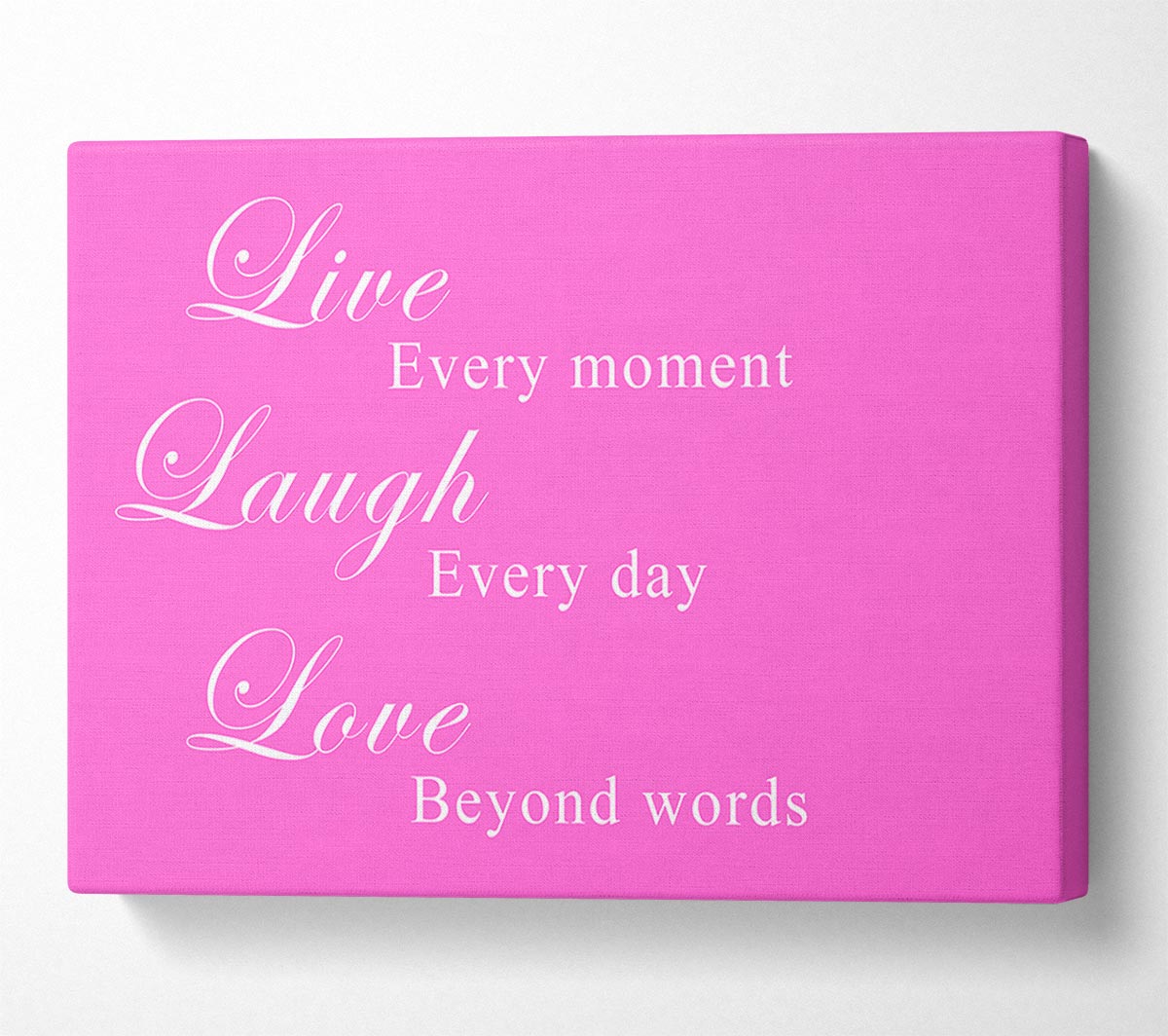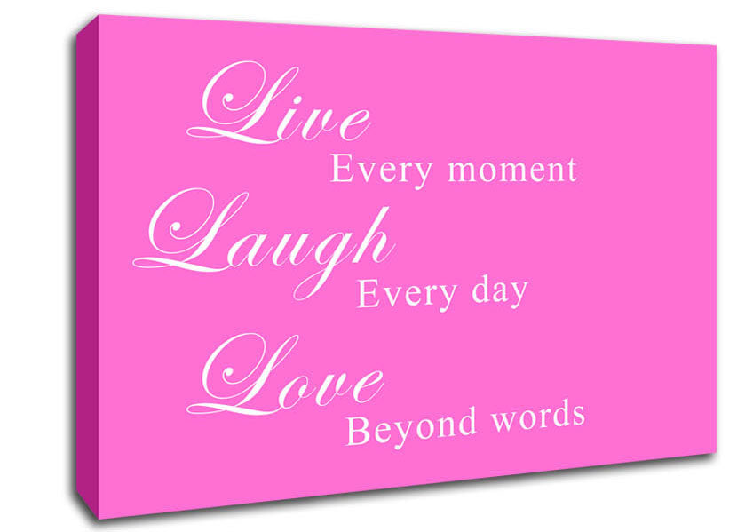 Love Quote Live Laugh Love Vivid Pink Canvas Print handmade in the UK. Stretched over a 2 inch thick wooden box frame, ready to hang on your wall.