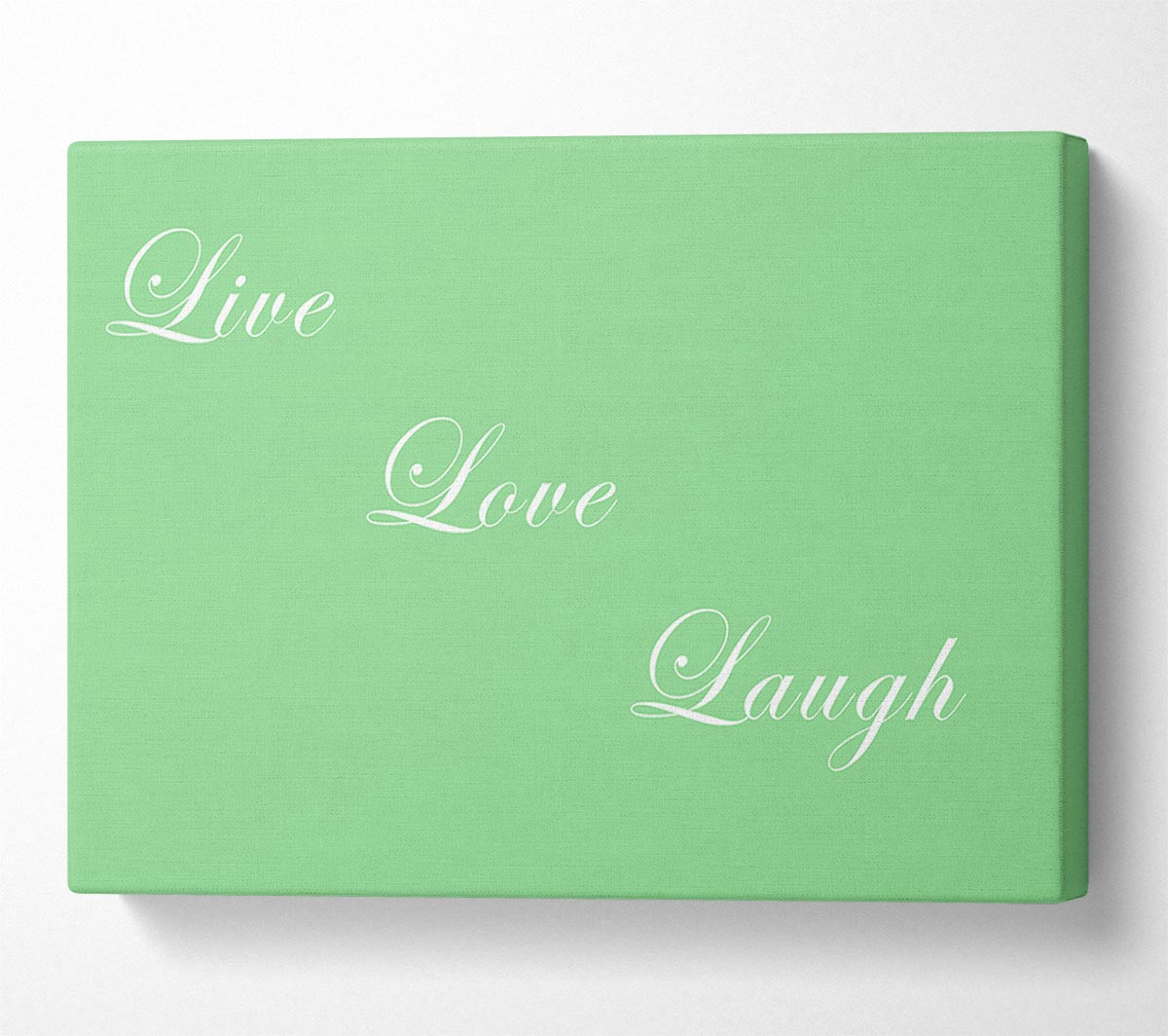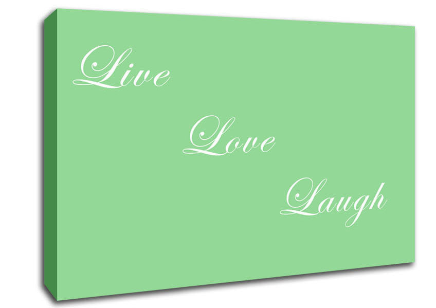 Love Quote Live Love Laugh Green Canvas Print handmade in the UK. Stretched over a 2 inch thick wooden box frame, ready to hang on your wall.