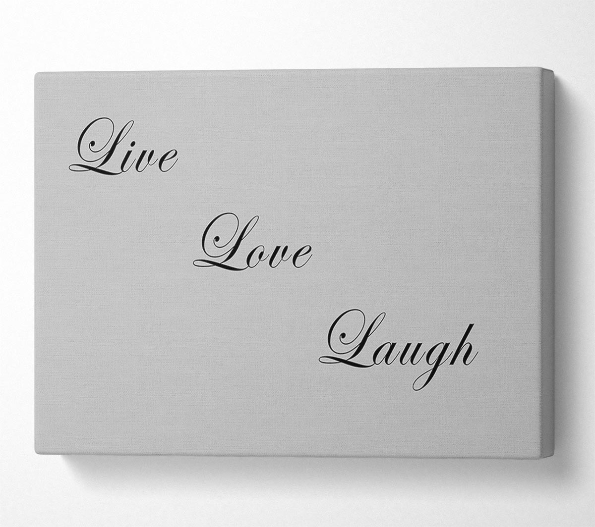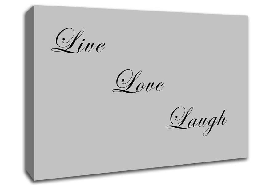 Love Quote Live Love Laugh Grey Canvas Print handmade in the UK. Stretched over a 2 inch thick wooden box frame, ready to hang on your wall.