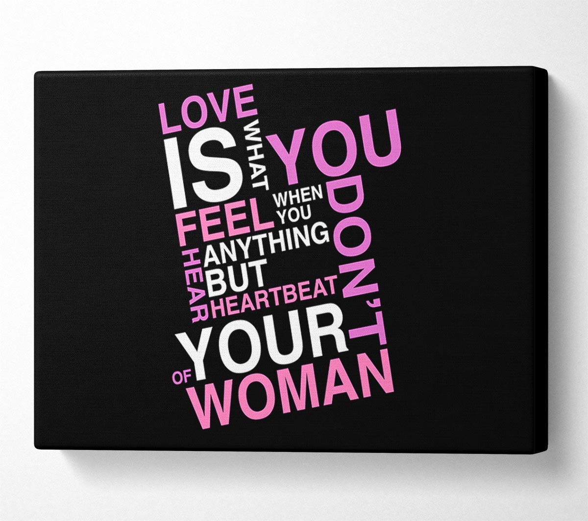 Love Quote Love Is What You Feel Canvas Print handmade in the UK. Stretched over a 2 inch thick wooden box frame, ready to hang on your wall.