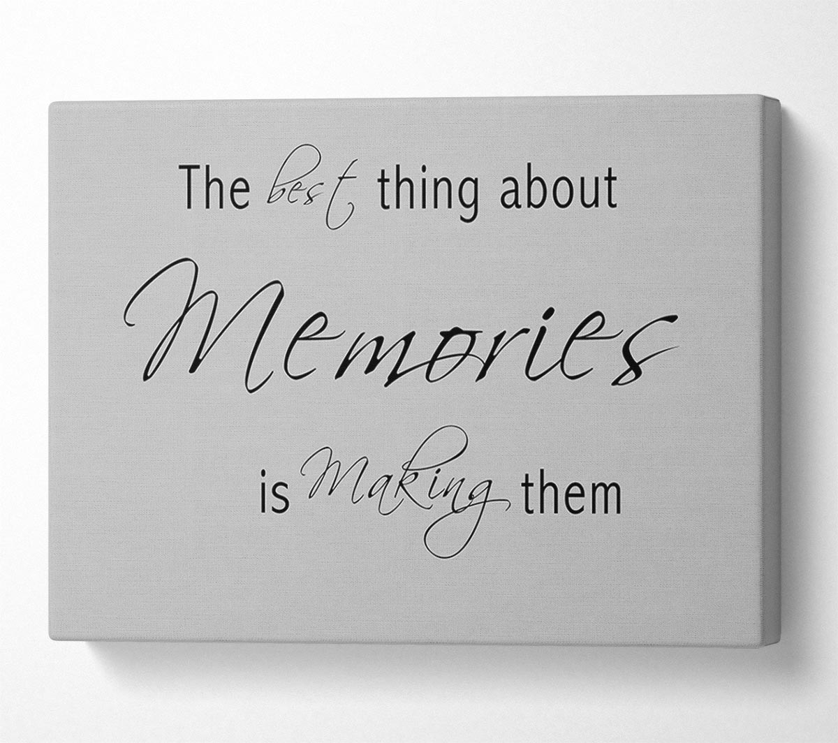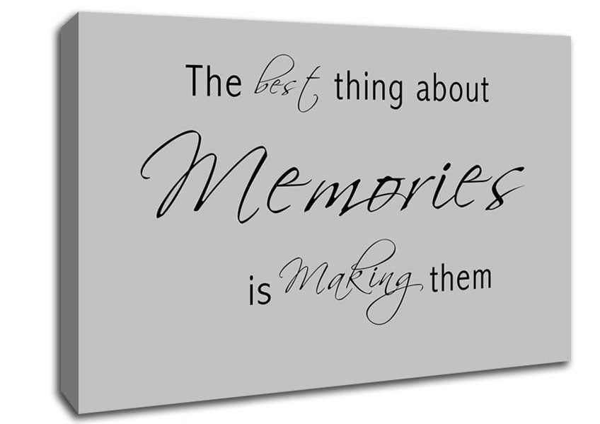 Love Quote The Best Thing About Memories 2 Grey Canvas Print handmade in the UK. Stretched over a 2 inch thick wooden box frame, ready to hang on your wall.