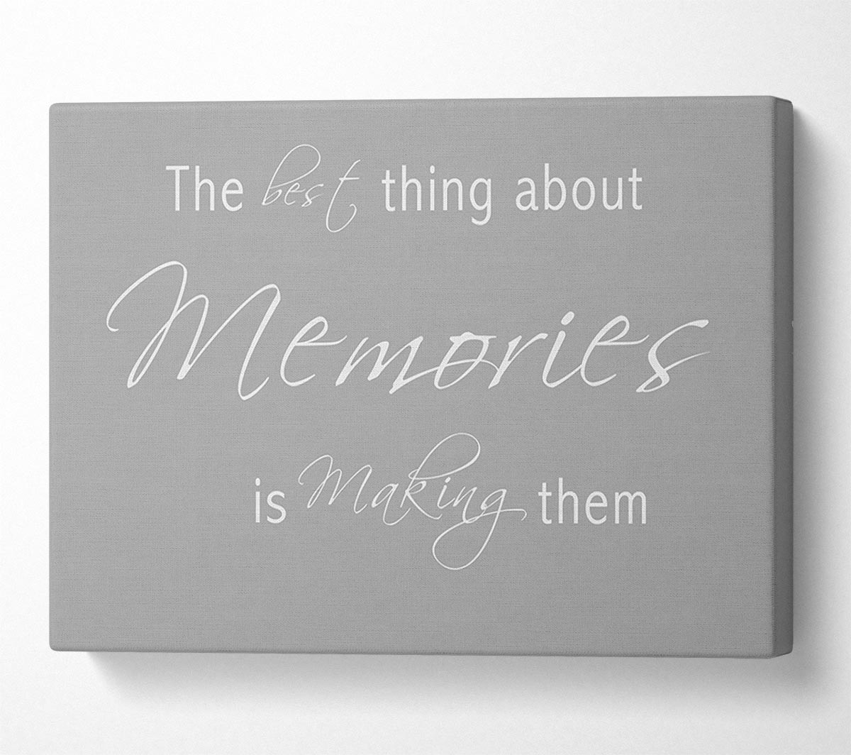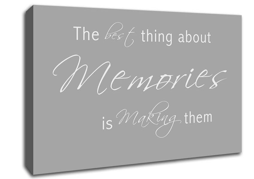 Love Quote The Best Thing About Memories 2 Grey White Canvas Print handmade in the UK. Stretched over a 2 inch thick wooden box frame, ready to hang on your wall.