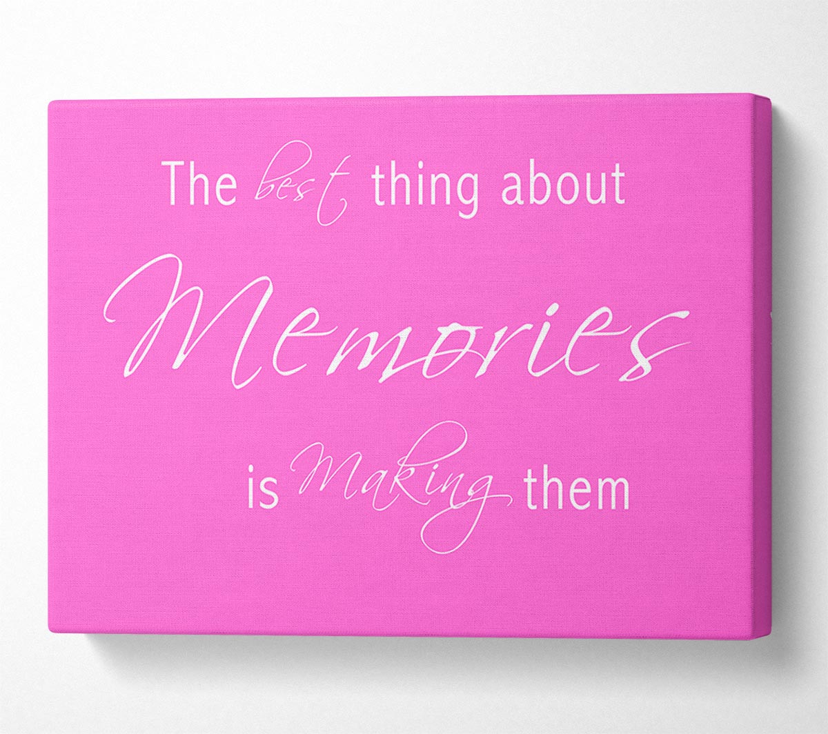 Love Quote The Best Thing About Memories 2 Vivid Pink Canvas Print handmade in the UK. Stretched over a 2 inch thick wooden box frame, ready to hang on your wall.