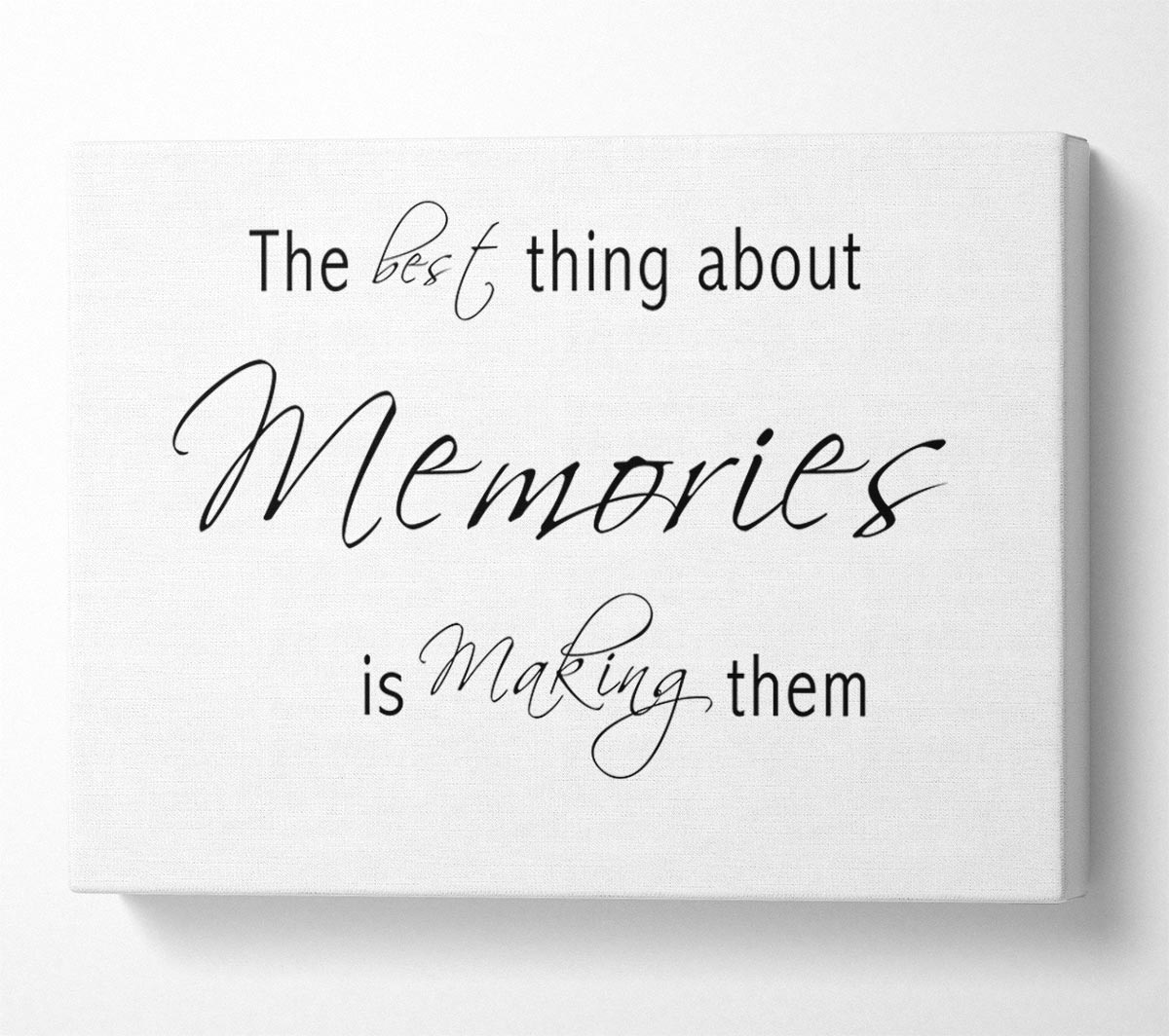 Love Quote The Best Thing About Memories 2 White Canvas Print handmade in the UK. Stretched over a 2 inch thick wooden box frame, ready to hang on your wall.