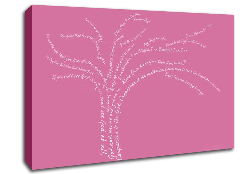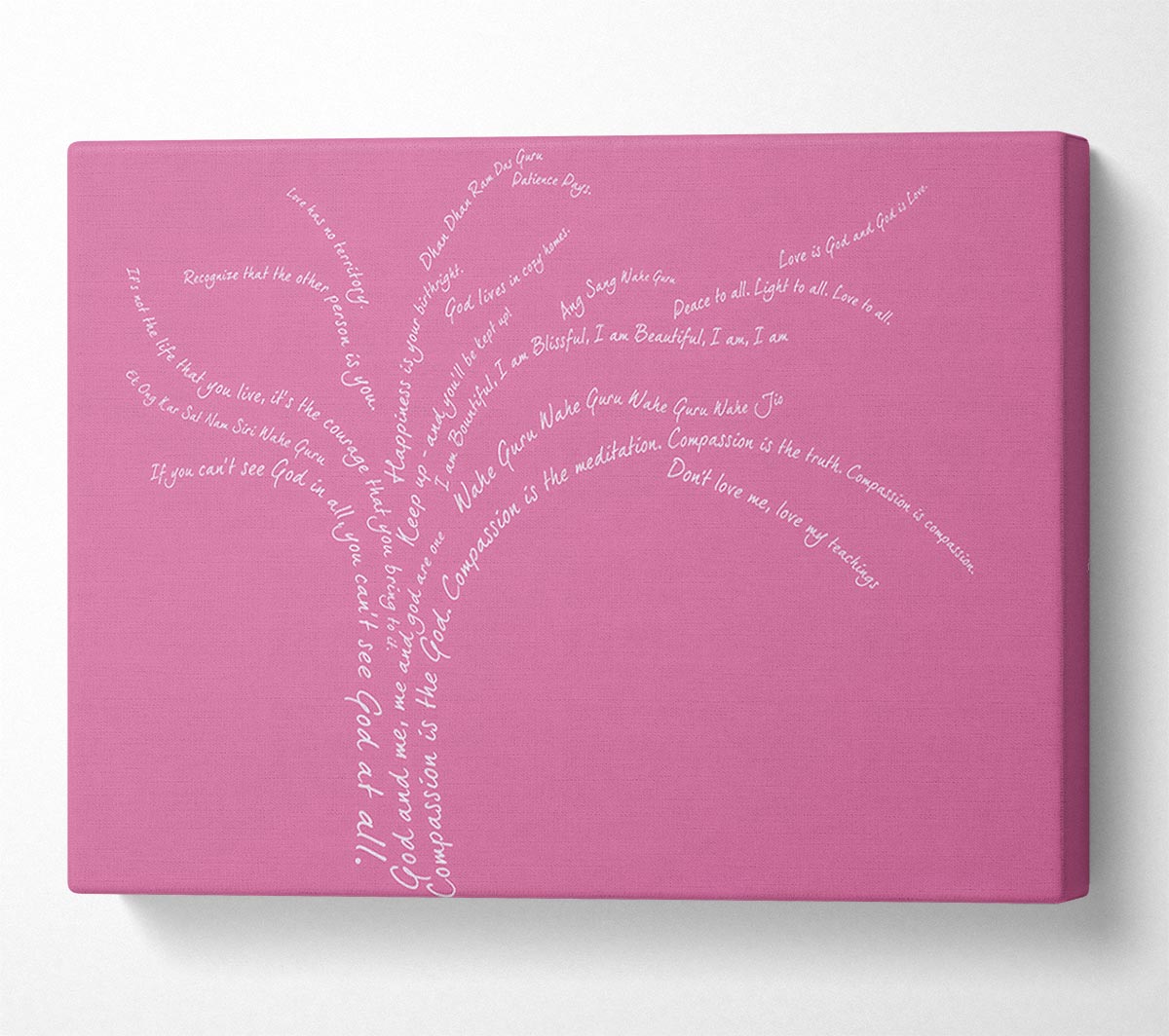 Love Quote The Love Tree Pink Canvas Print handmade in the UK. Stretched over a 2 inch thick wooden box frame, ready to hang on your wall.