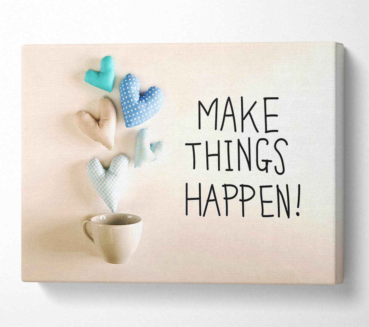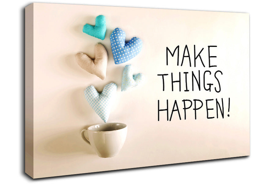Make Things Happen 3 Canvas Print handmade in the UK. Stretched over a 2 inch thick wooden box frame, ready to hang on your wall.
