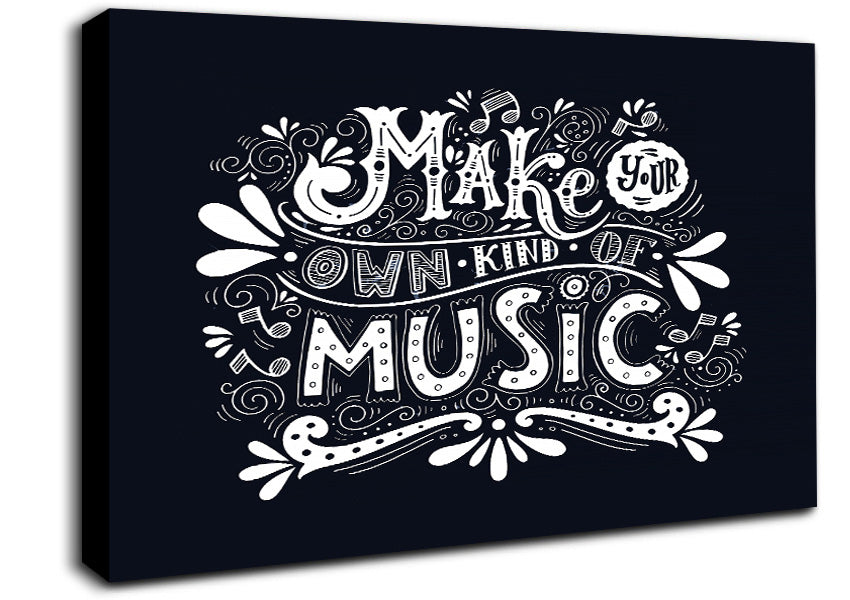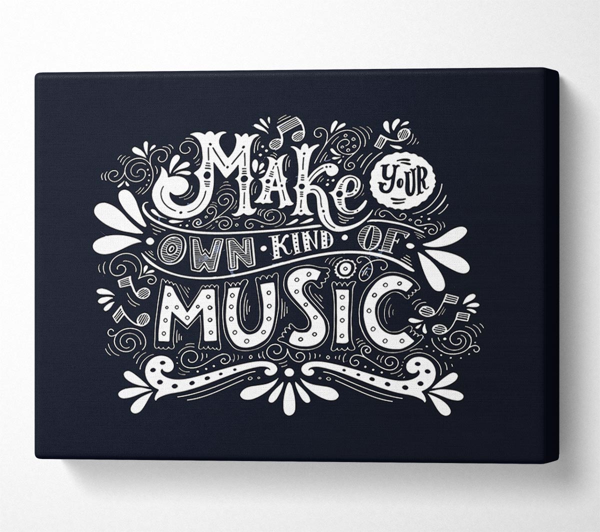 Make Your Own Kind Of Music Canvas Print handmade in the UK. Stretched over a 2 inch thick wooden box frame, ready to hang on your wall.