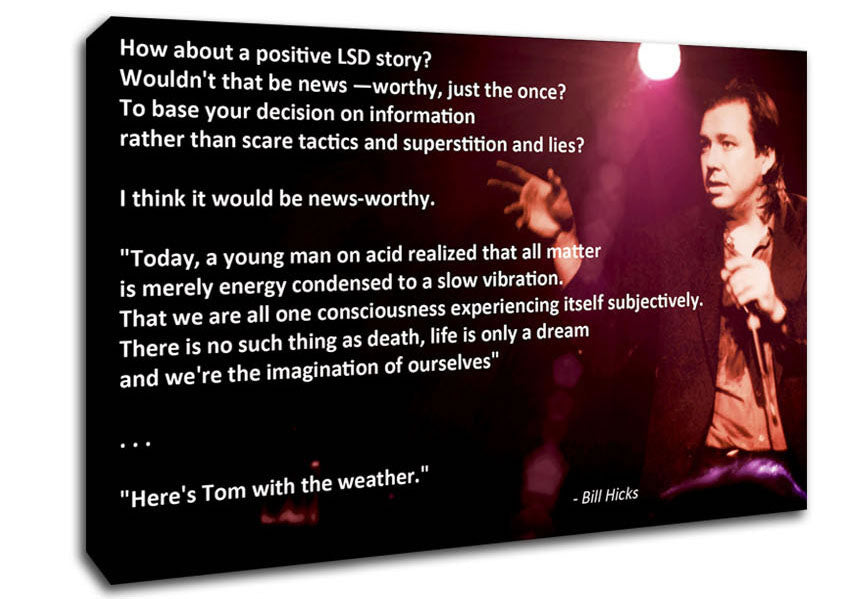 Motivational Quote Bill Hicks Imagination Of Ourselves Canvas Print handmade in the UK. Stretched over a 2 inch thick wooden box frame, ready to hang on your wall.