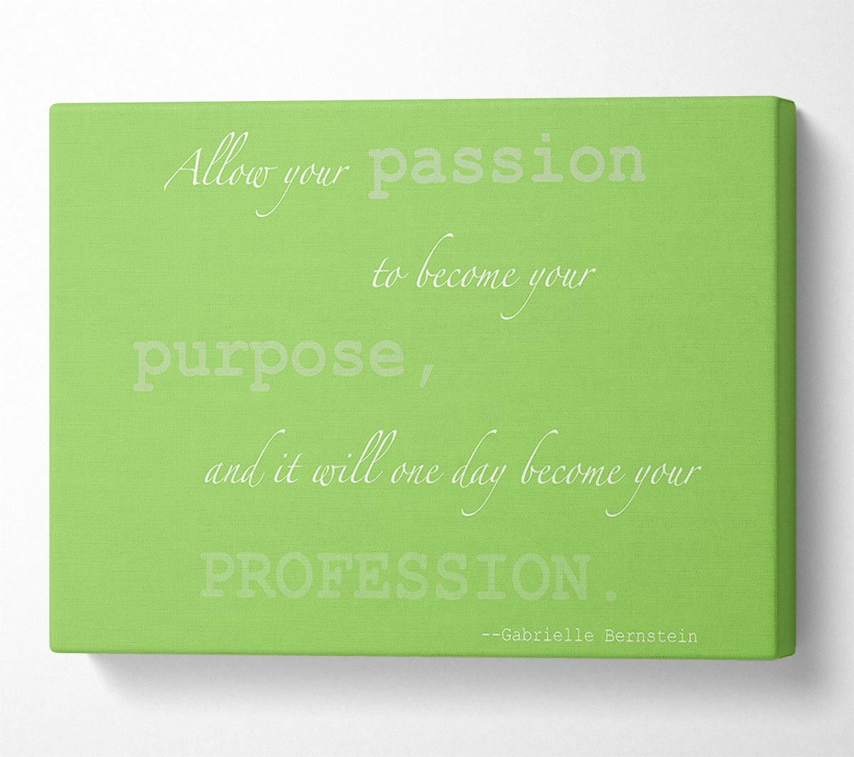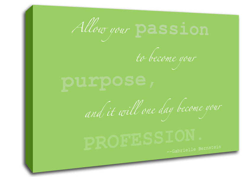 Motivational Quote Gabrielle Bernstein Allow Your Passion Lime Green Canvas Print handmade in the UK. Stretched over a 2 inch thick wooden box frame, ready to hang on your wall.