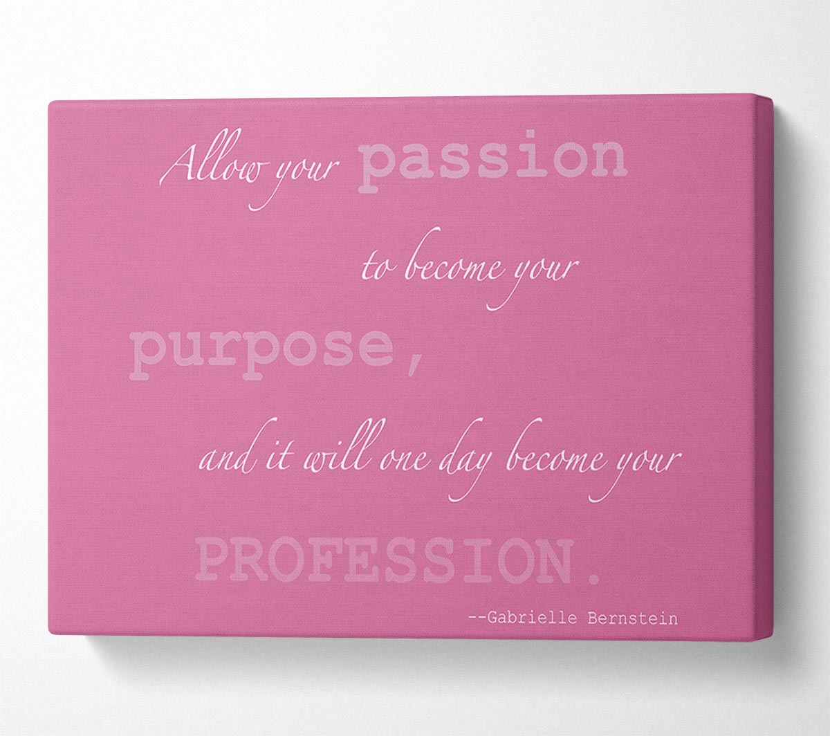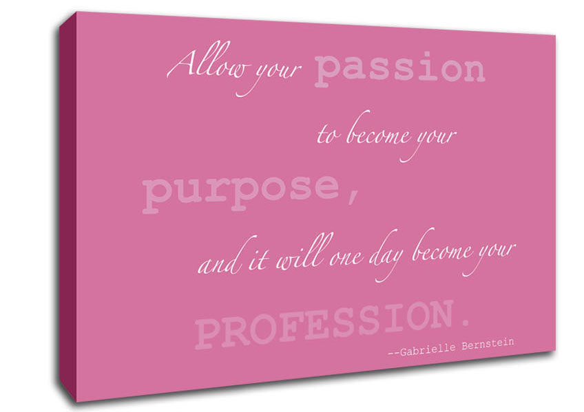 Motivational Quote Gabrielle Bernstein Allow Your Passion Pink Canvas Print handmade in the UK. Stretched over a 2 inch thick wooden box frame, ready to hang on your wall.