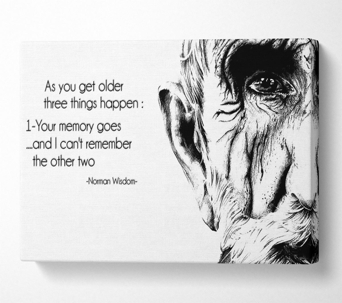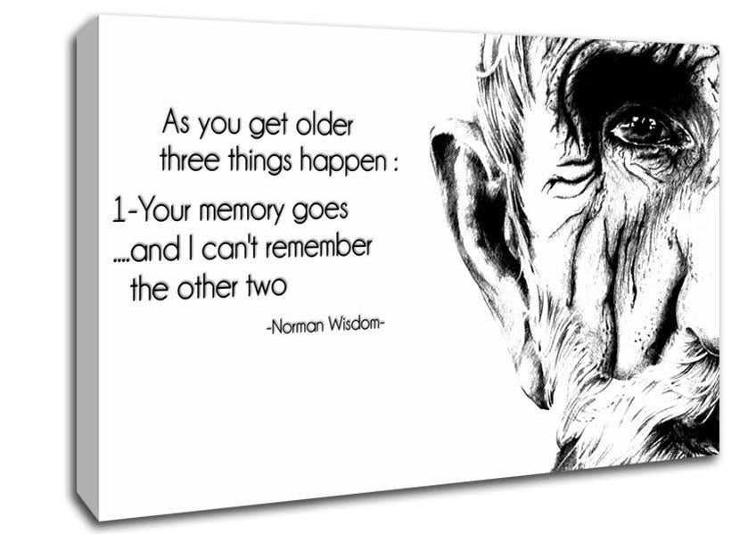 Motivational Quote Norman Wisdom As You Get Older Canvas Print handmade in the UK. Stretched over a 2 inch thick wooden box frame, ready to hang on your wall.