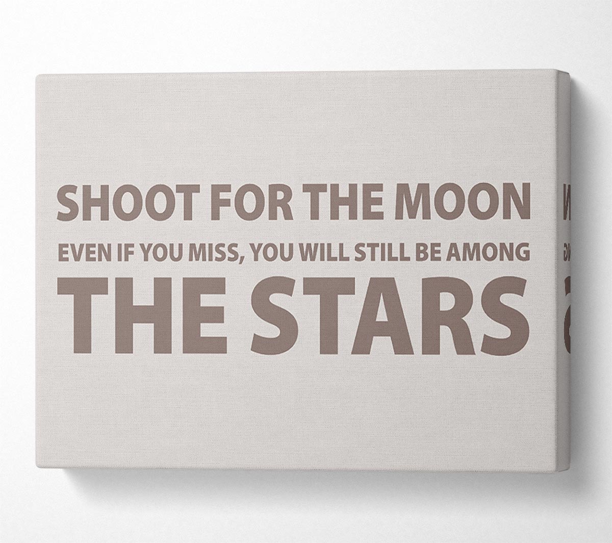 Motivational Quote Shoot For The Moon Beige Canvas Print handmade in the UK. Stretched over a 2 inch thick wooden box frame, ready to hang on your wall.