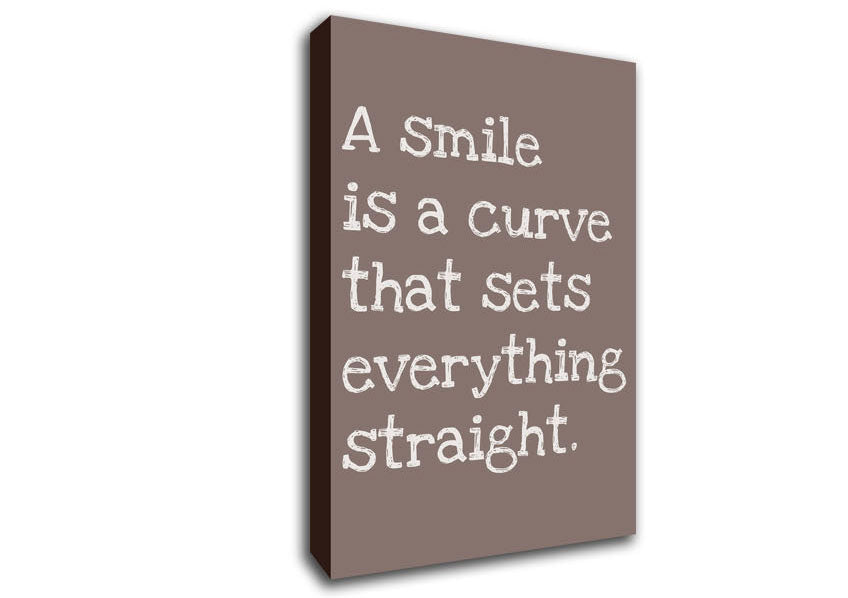 Motivational Quote Smile Is A Curve Beige Canvas Print handmade in the UK. Stretched over a 2 inch thick wooden box frame, ready to hang on your wall.