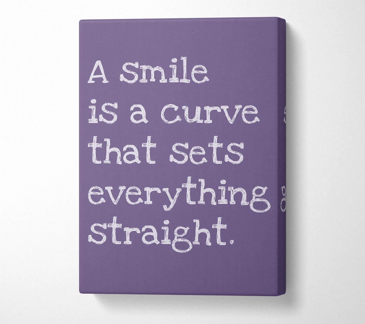 Motivational Quote Smile Is A Curve Lilac Canvas Print handmade in the UK. Stretched over a 2 inch thick wooden box frame, ready to hang on your wall.