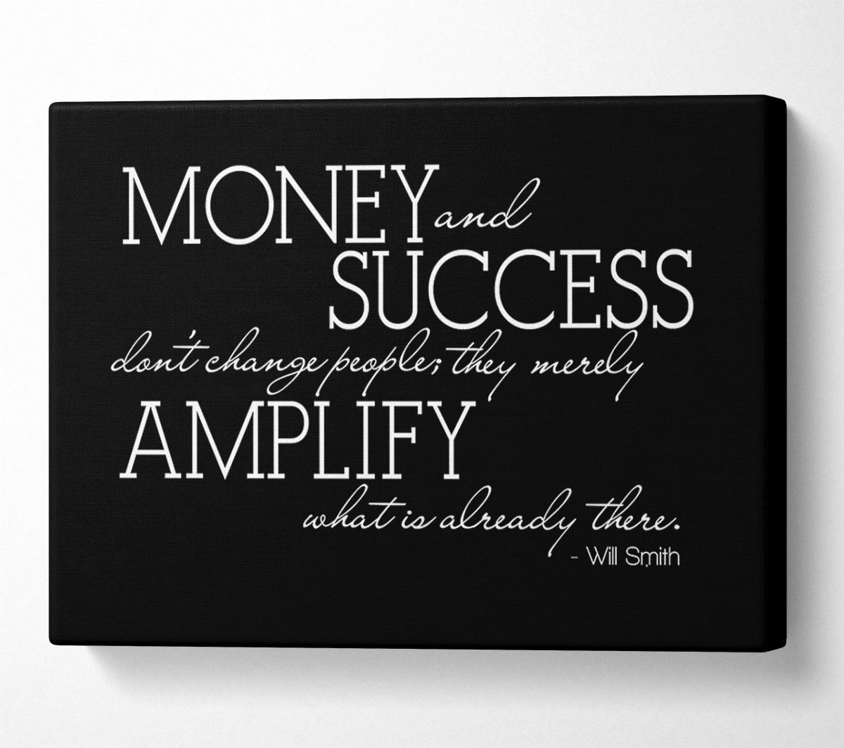 Motivational Quote Will Smith Money And Success Canvas Print handmade in the UK. Stretched over a 2 inch thick wooden box frame, ready to hang on your wall.
