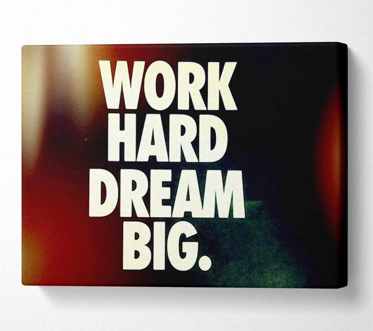 Motivational Quote Work Hard Dream Big Canvas Print handmade in the UK. Stretched over a 2 inch thick wooden box frame, ready to hang on your wall.