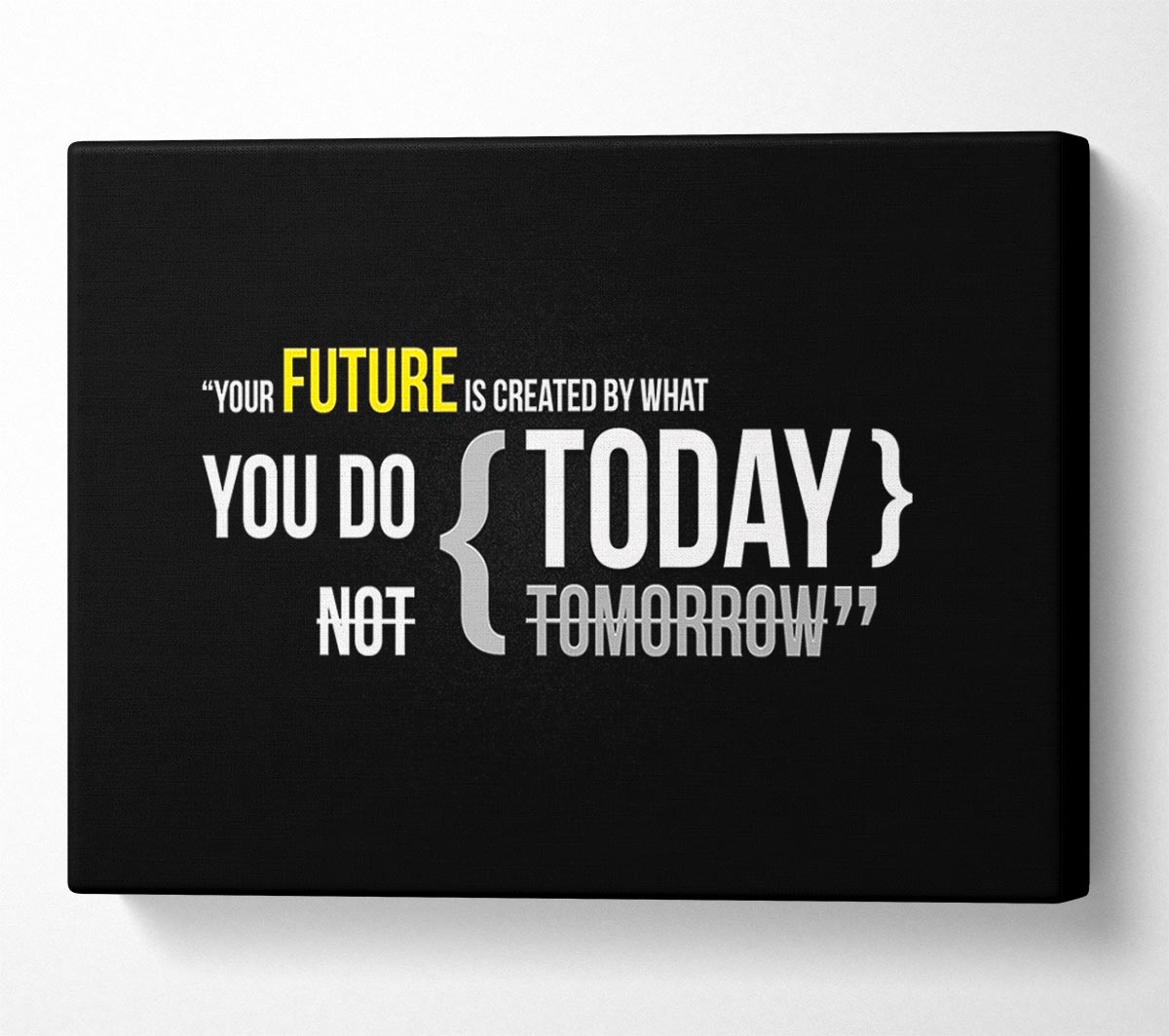 Motivational Quote Your Future Is Created By What You Do Canvas Print handmade in the UK. Stretched over a 2 inch thick wooden box frame, ready to hang on your wall.