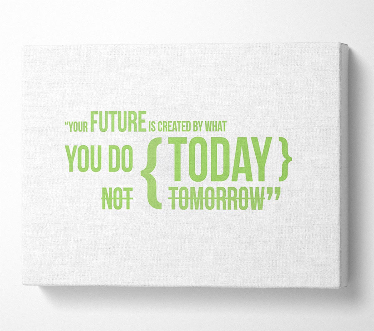 Motivational Quote Your Future Is Created By What You Do Lime Green Canvas Print handmade in the UK. Stretched over a 2 inch thick wooden box frame, ready to hang on your wall.