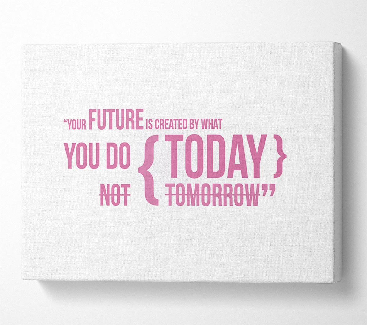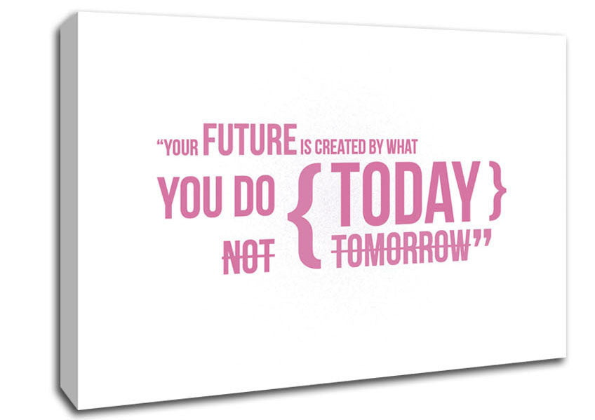 Motivational Quote Your Future Is Created By What You Do Pink Canvas Print handmade in the UK. Stretched over a 2 inch thick wooden box frame, ready to hang on your wall.