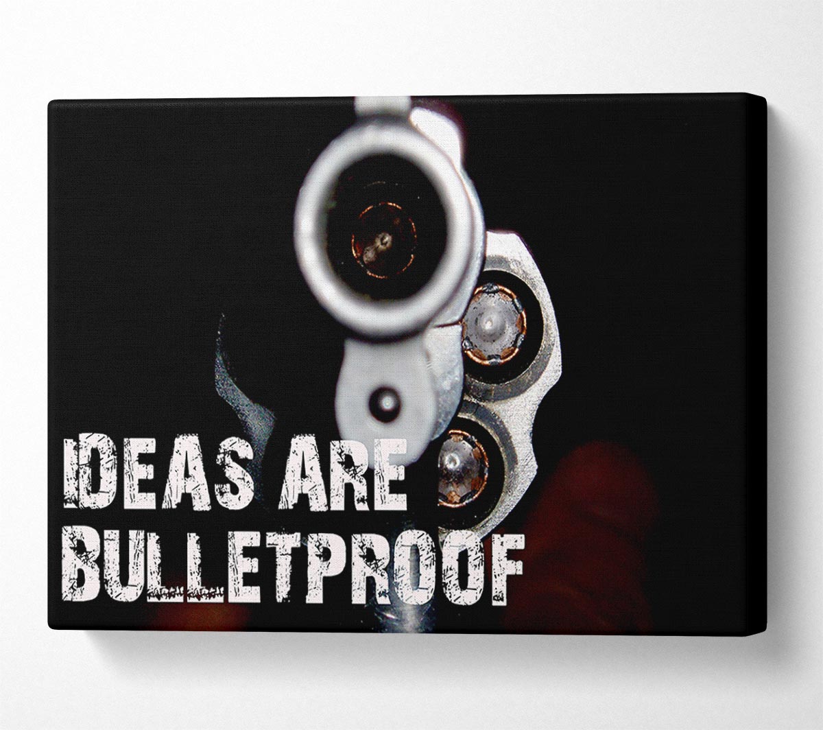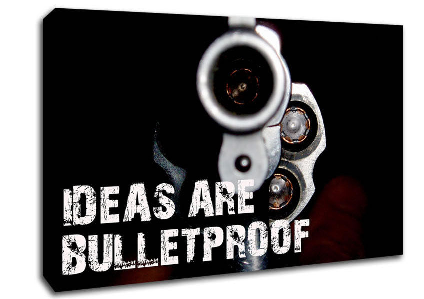 Movie Quote Ideas Are Bulletproof Canvas Print handmade in the UK. Stretched over a 2 inch thick wooden box frame, ready to hang on your wall.