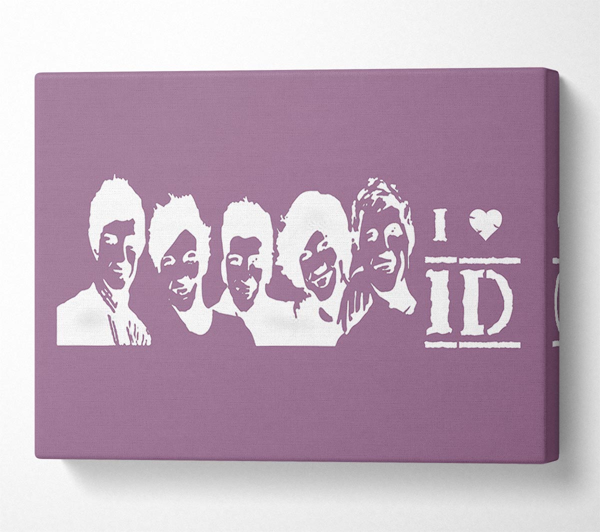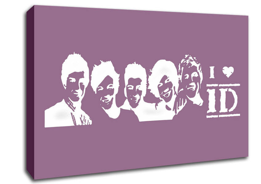 Music Quote I Love 1 Direction Dusty Pink Canvas Print handmade in the UK. Stretched over a 2 inch thick wooden box frame, ready to hang on your wall.