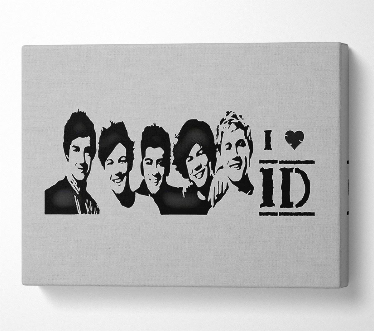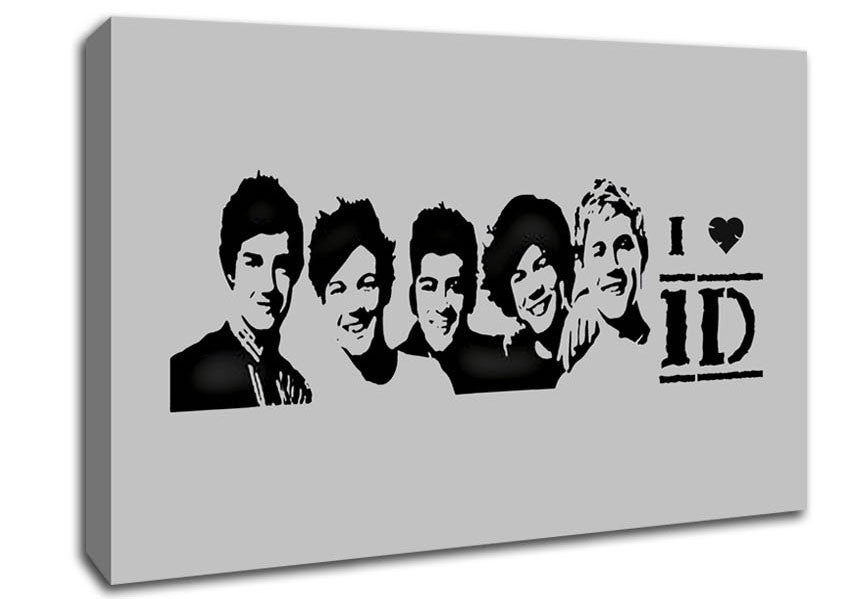 Music Quote I Love 1 Direction Grey Canvas Print handmade in the UK. Stretched over a 2 inch thick wooden box frame, ready to hang on your wall.