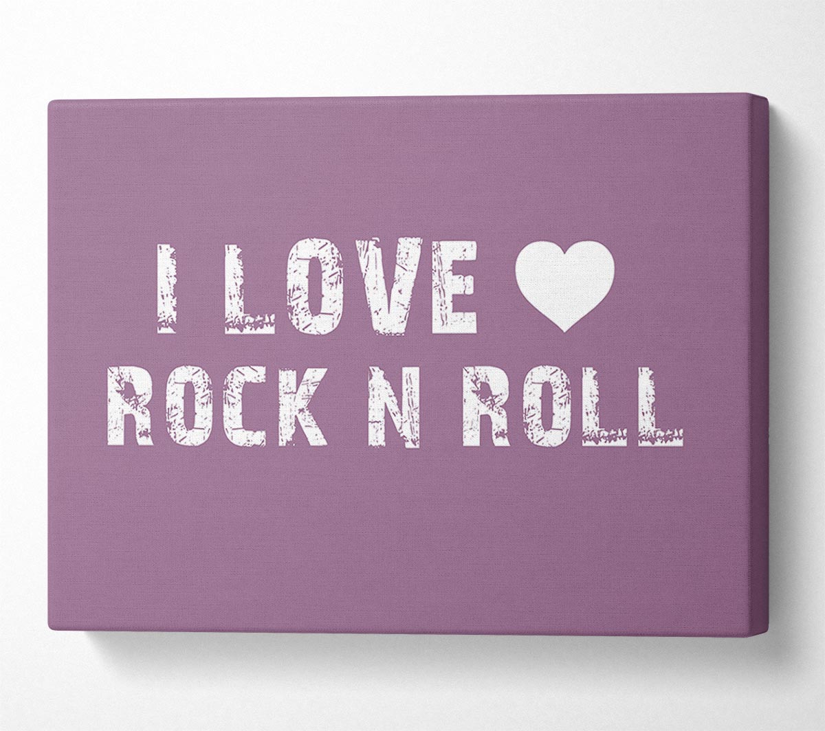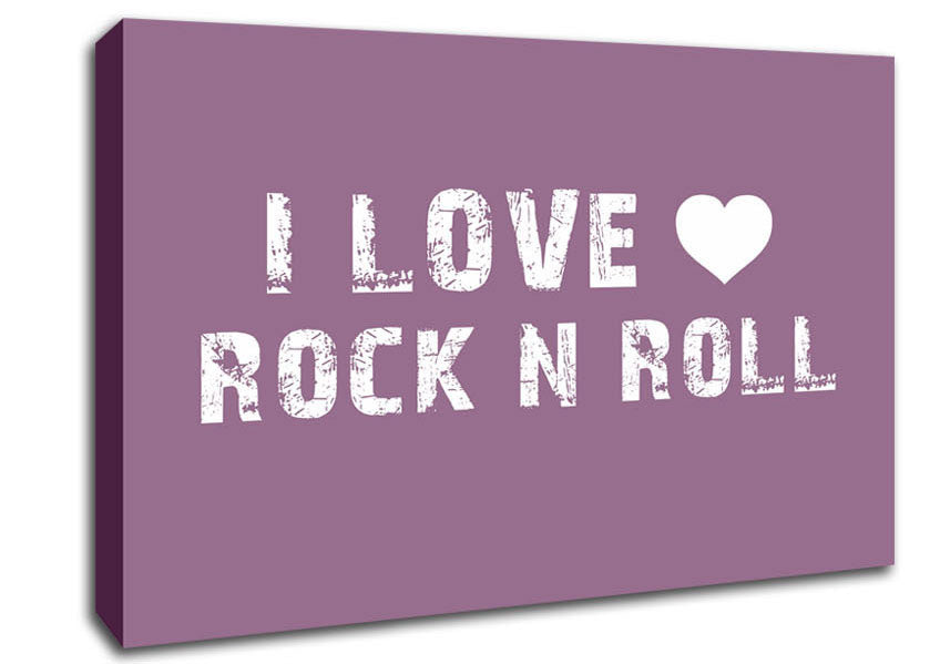 Music Quote I Love Rock N Roll Dusty Pink Canvas Print handmade in the UK. Stretched over a 2 inch thick wooden box frame, ready to hang on your wall.