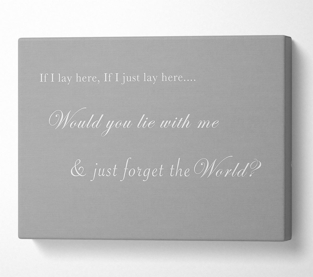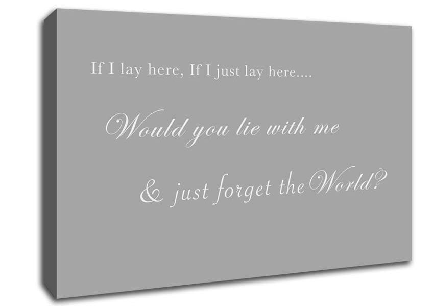 Music Quote If I Lay Here If I Just Lay Here Snow Patrol Grey White Canvas Print handmade in the UK. Stretched over a 2 inch thick wooden box frame, ready to hang on your wall.