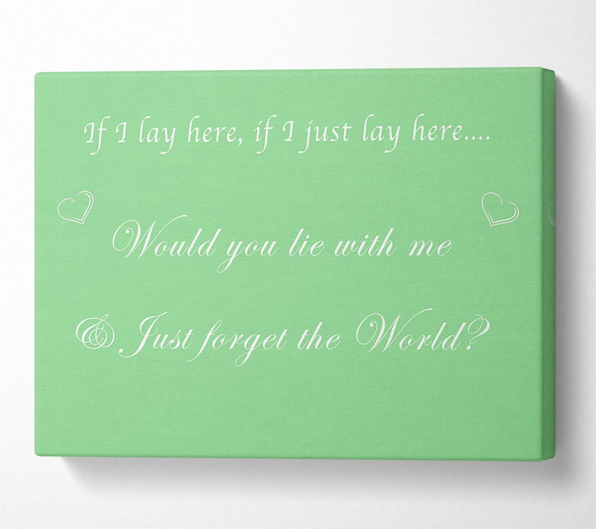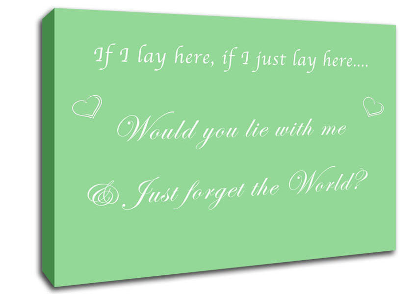Music Quote If I Lay Here If I Just Snow Patrol Green Canvas Print handmade in the UK. Stretched over a 2 inch thick wooden box frame, ready to hang on your wall.