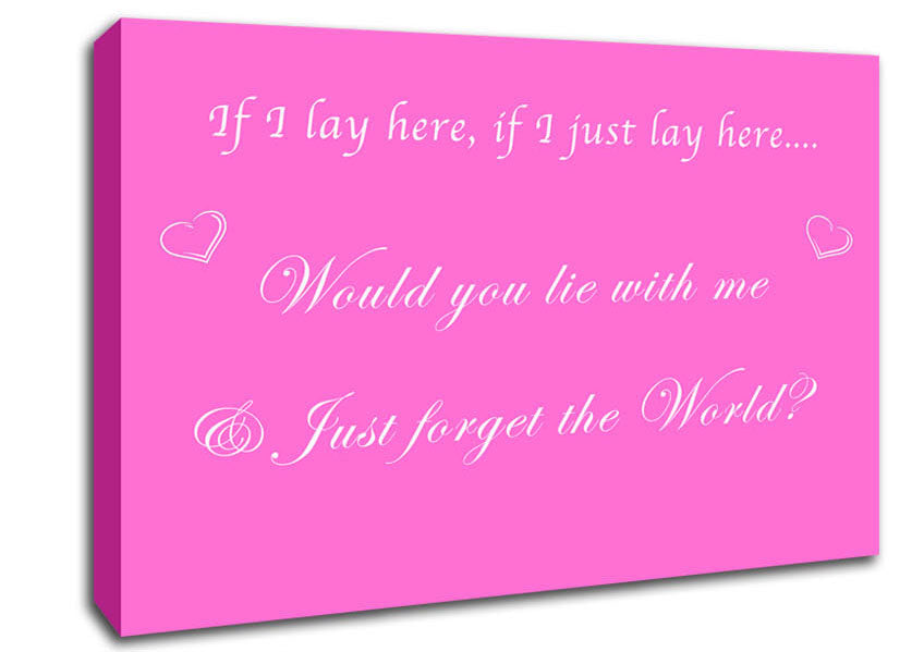Music Quote If I Lay Here If I Just Snow Patrol Vivid Pink Canvas Print handmade in the UK. Stretched over a 2 inch thick wooden box frame, ready to hang on your wall.