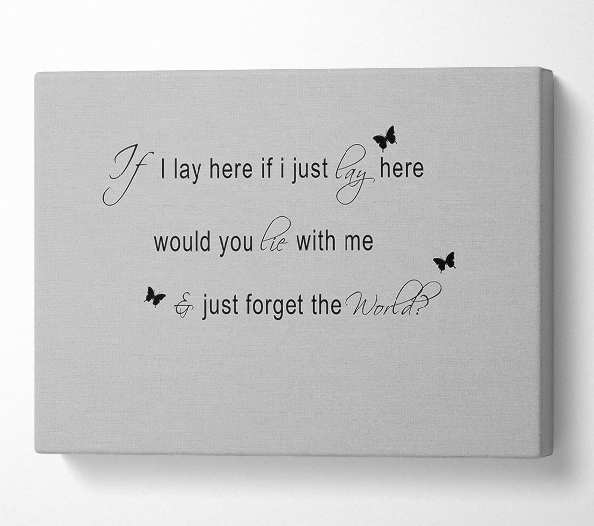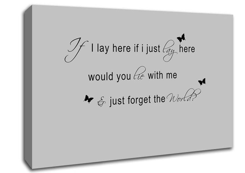 Music Quote If I Lay Here Snow Patrol 2 Grey Canvas Print handmade in the UK. Stretched over a 2 inch thick wooden box frame, ready to hang on your wall.