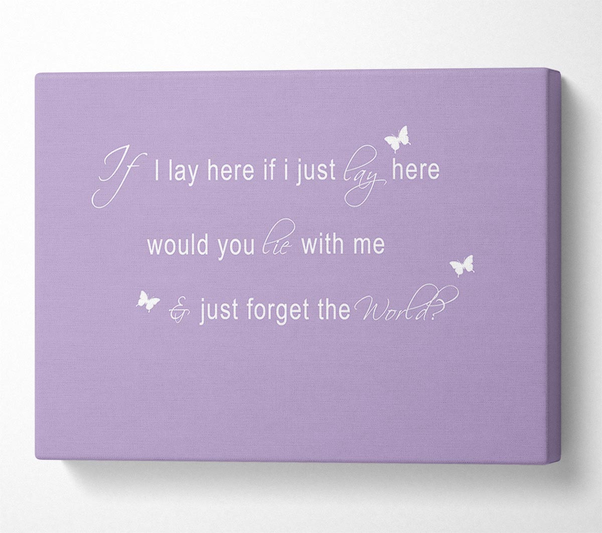 Music Quote If I Lay Here Snow Patrol 2 Lilac Canvas Print handmade in the UK. Stretched over a 2 inch thick wooden box frame, ready to hang on your wall.