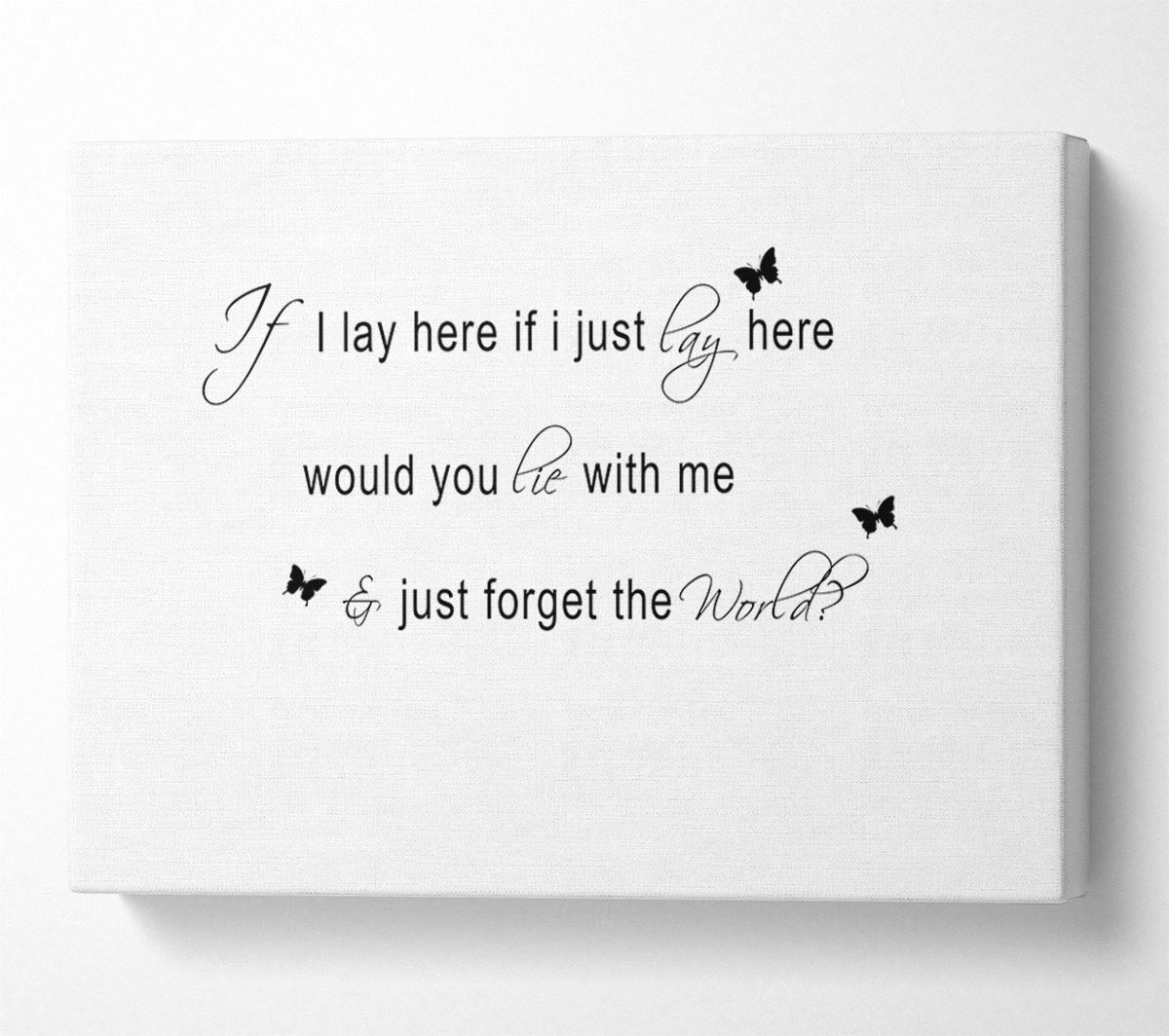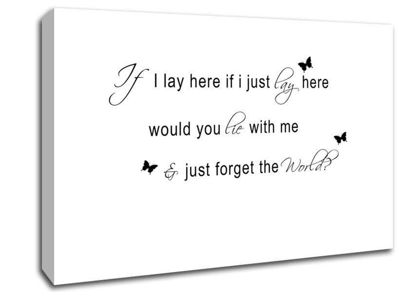 Music Quote If I Lay Here Snow Patrol 2 White Canvas Print handmade in the UK. Stretched over a 2 inch thick wooden box frame, ready to hang on your wall.
