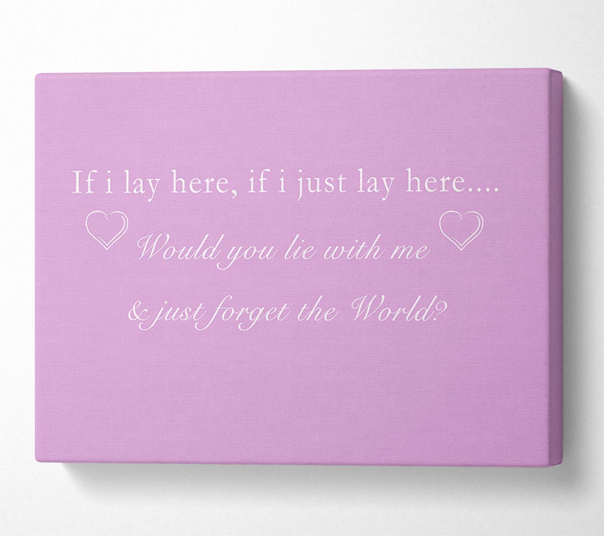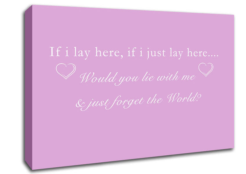 Music Quote If I Lay Here Snow Patrol Pink Canvas Print handmade in the UK. Stretched over a 2 inch thick wooden box frame, ready to hang on your wall.