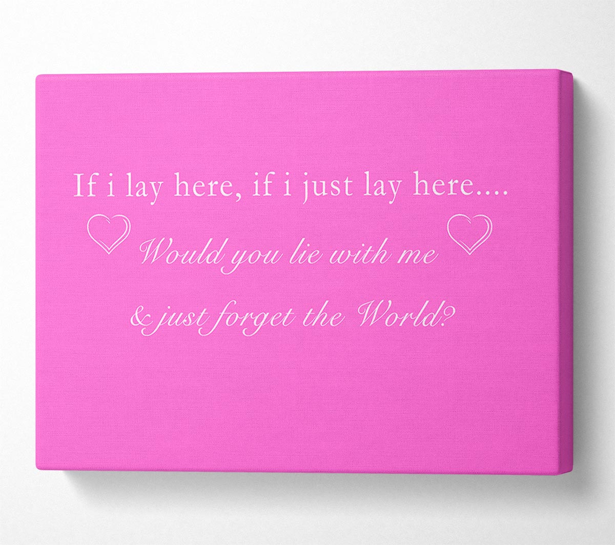 Music Quote If I Lay Here Snow Patrol Vivid Pink Canvas Print handmade in the UK. Stretched over a 2 inch thick wooden box frame, ready to hang on your wall.