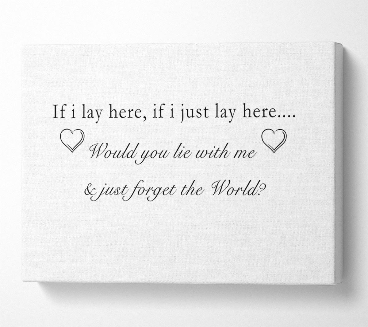 Music Quote If I Lay Here Snow Patrol White Canvas Print handmade in the UK. Stretched over a 2 inch thick wooden box frame, ready to hang on your wall.