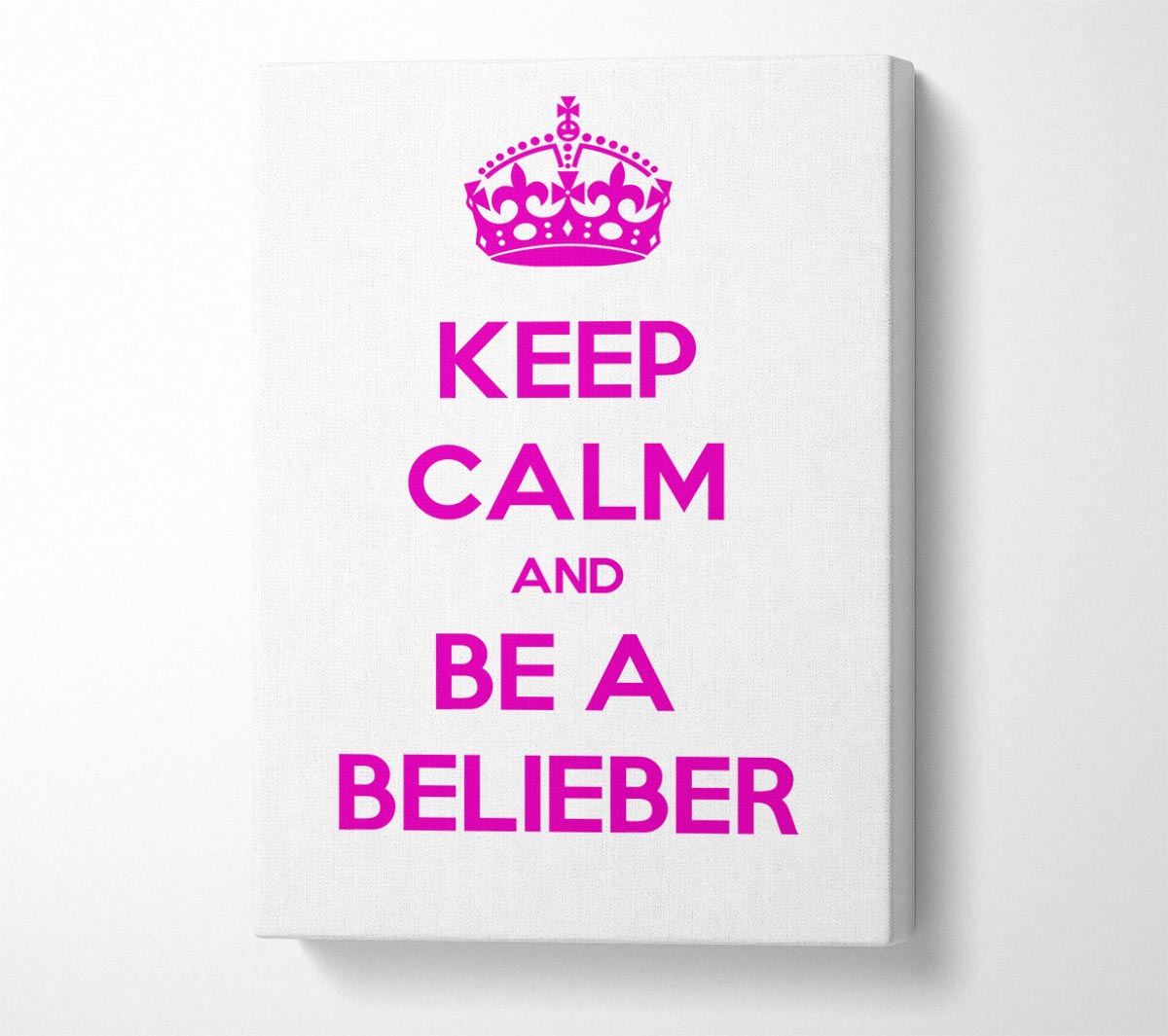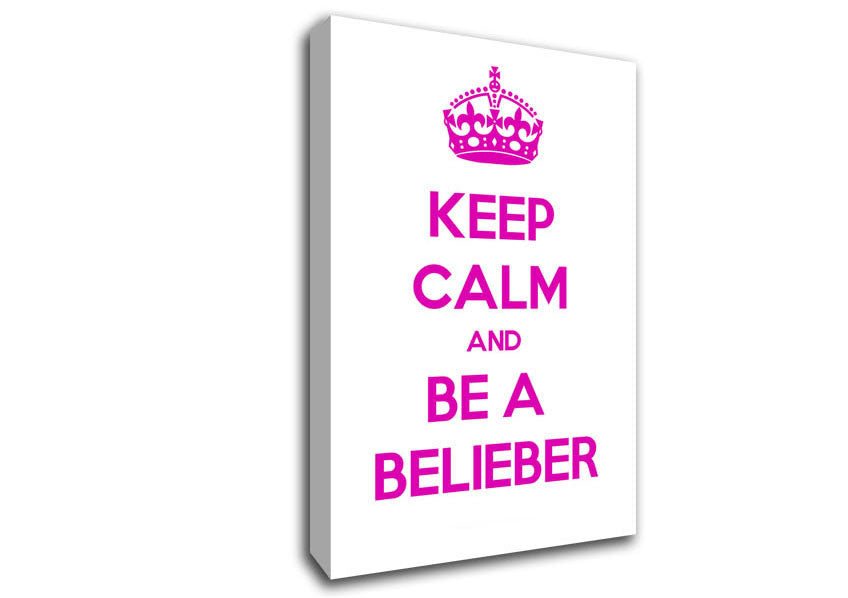 Music Quote Keep Calm Justin Bieber Canvas Print handmade in the UK. Stretched over a 2 inch thick wooden box frame, ready to hang on your wall.