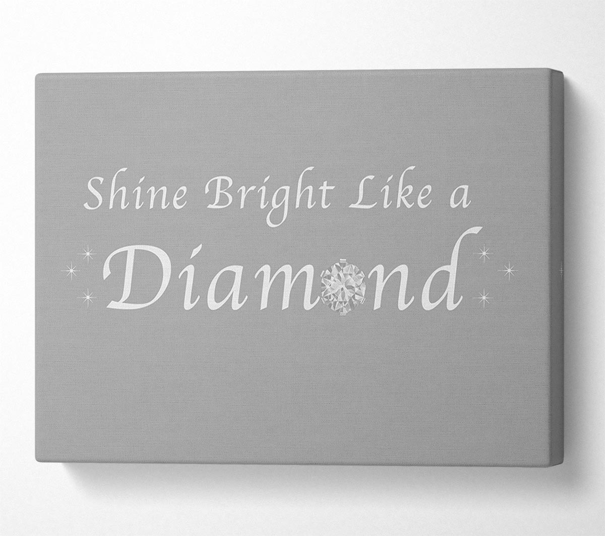 Music Quote Shine Bright Like A Diamond Rihanna Grey White Canvas Print handmade in the UK. Stretched over a 2 inch thick wooden box frame, ready to hang on your wall.